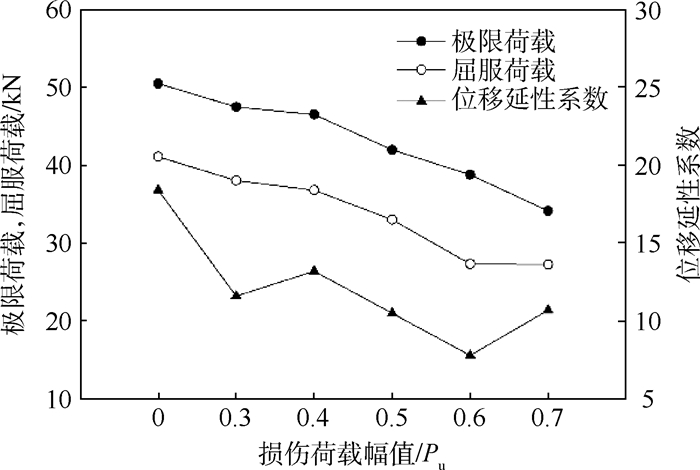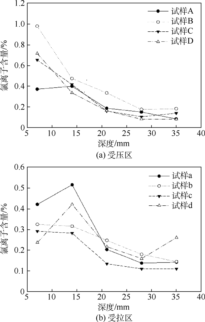 沿海环境下的钢筋混凝土(RC)结构处于荷载作用和环境作用同时存在的工作状态且在正常条件下会出现不同程度的荷载损伤。为了在实验室内模拟其工作状态,对RC梁试件施加幅值分别为0.3Pu、0.4Pu、0.5Pu、0.6Pu和0.7Pu(Pu为单调加载梁的极限荷载)的初始荷载造成不同程度的损伤,经历120次海水干湿循环作用后,进行单调加载试验测试剩余力学性能,并对梁试件钻芯取样测试不同位置及深度处混凝土的氯离子含量。试验结果表明,不同程度初始损伤RC梁经历120次海水干湿循环后,其屈服荷载、极限荷载和延性均随初始荷载幅值的增加而降低;与无损伤梁试件相比,当初始损伤荷载为0.4Pu时,梁试件的屈服荷载和极限荷载降幅分别为10.4%和7.9%,随着初始荷载增大,屈服荷载和极限荷载快速下降,当初始损伤荷载为0.7Pu时,屈服荷载和极限荷载降幅分别达33.7%和32.4%。氯离子含量测试结果表明,梁试件混凝土受拉区氯离子含量均大于受压区氯离子含量;当初始损伤荷载小于0.5Pu时,受拉钢筋表面混凝土的氯离子含量差别不大且小于0.1%,当初始损伤荷载为0.7Pu时, 钢筋表面氯离子含量最大达到0.14%。可见,初始荷载损伤与海水干湿循环综合作用对RC梁力学性能及耐久性劣化影响显著。