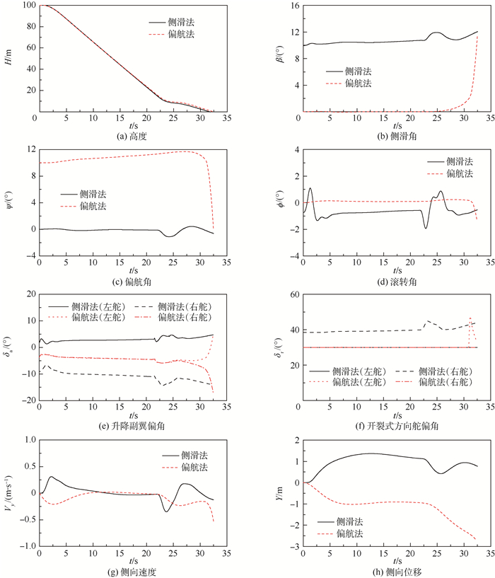 飞翼布局飞机的动态特性与常规飞机相差较大,在侧风起降过程中呈现出新的运动特性。对侧风起降过程中飞翼布局飞机的配平特性与响应特性进行了计算与分析,掌握了其区别于常规飞机的特点,侧风对飞翼布局飞机起降安全影响最严重为侧翻效应;结合新型操纵舵面的操纵特性与使用特性,对飞翼布局飞机起降阶段的效能需求开展了分析;通过对常用的侧风操纵策略进行了仿真计算与对比分析,提出了适用于飞翼布局飞机的侧风起降操纵策略。