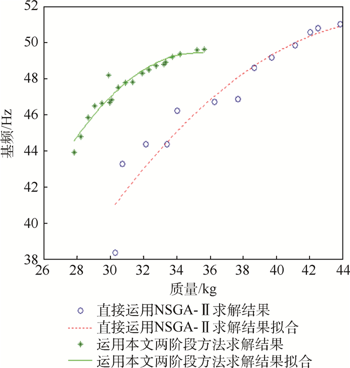 为了改善卫星天线复合材料框架的结构动力学性能,提出了一种针对卫星天线框架复合材料铺层的两阶段优化设计方法。阶段Ⅰ以各铺层的角度为设计变量进行铺层顺序优化,框架基频的最大化为优化目标,铺层数的最大值为约束条件。其中设计变量用一种多进制码来表示,并将多进制码映射为连续变量,应用粒子群优化(PSO)算法对阶段Ⅰ优化模型进行求解。在阶段Ⅰ优化结果的基础上,阶段Ⅱ主要是优化复合材料的层数,以基频最大化与质量最小化为优化目标建立多目标拓扑优化模型,应用第2代非劣排序遗传算法(NSGA-Ⅱ)进行求解。为了验证该方法的有效性,对某大型卫星天线复合材料框架进行优化设计,结果表明:该方法能有效地减小天线板复合材料框架的质量,并提高基频。