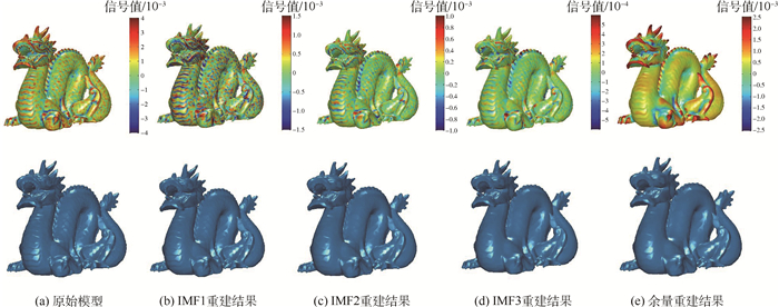 在计算机辅助设计与逆向工程应用中,针对缺乏拓扑连接关系的点云数据,提出了基于经验模态分解(EMD)的点云数据平滑与增强算法。首先,以点云模型的拉普拉斯矩阵坐标与法向的内积作为EMD输入信号,提取点云模型输入信号的极值点作为插值节点计算信号的上下包络;然后,为实现特征保持的EMD信号分解,通过检测点云数据上特征点,并在计算信号上下包络的过程中作为约束,克服传统EMD算法无法保持特征的局限;最后,迭代地从输入信号中减去上下包络的均值得到内蕴模态函数(IMF)和余量,并通过设计滤波器实现了点云数据平滑和增强。实验结果表明, 本文算法有效地将EMD推广到三维散乱点云数据中, 扩大EMD在三维几何中的应用范围,并在点云数据平滑和增强方面取得了很好的效果。