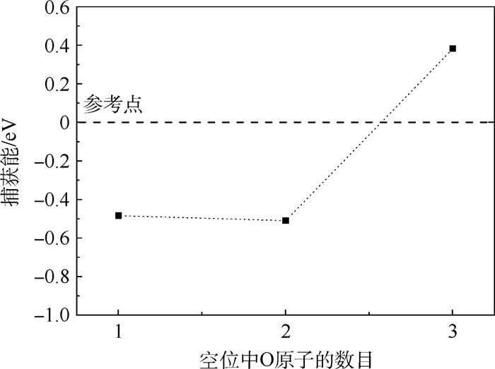 钒(V)是核聚变反应堆结构材料的重要候选材料。实验表明杂质氧(O)会对V的结构和力学性能产生极大的影响。采用基于密度泛函理论的第一性原理方法研究了O在V中热力学稳定性、扩散特性以及与缺陷空位的相互作用。O在V中易于占据八面体间隙位,其溶解能为-4.942 eV。O在间隙位的最佳扩散路径为八面体间隙位→四面体间隙位→八面体间隙位,扩散激活能为1.728 eV,在此基础上对不同温度下的扩散系数在文中给出了详细分析。O在V中与空位存在很强的吸引相互作用,1个O原子和2个O原子被空位捕获时的捕获能分别为-0.484 eV和-0.510 eV。当O原子的数量超过3,其捕获能变为正值0.382 eV,因此单空位最多能够结合2个O原子,这意味着“O1-vacancy”和“O2-vacancy”团簇在V中很容易形成。这些研究结果将对V基合金在核聚变反应堆中的最终应用具有一定的参考价值。