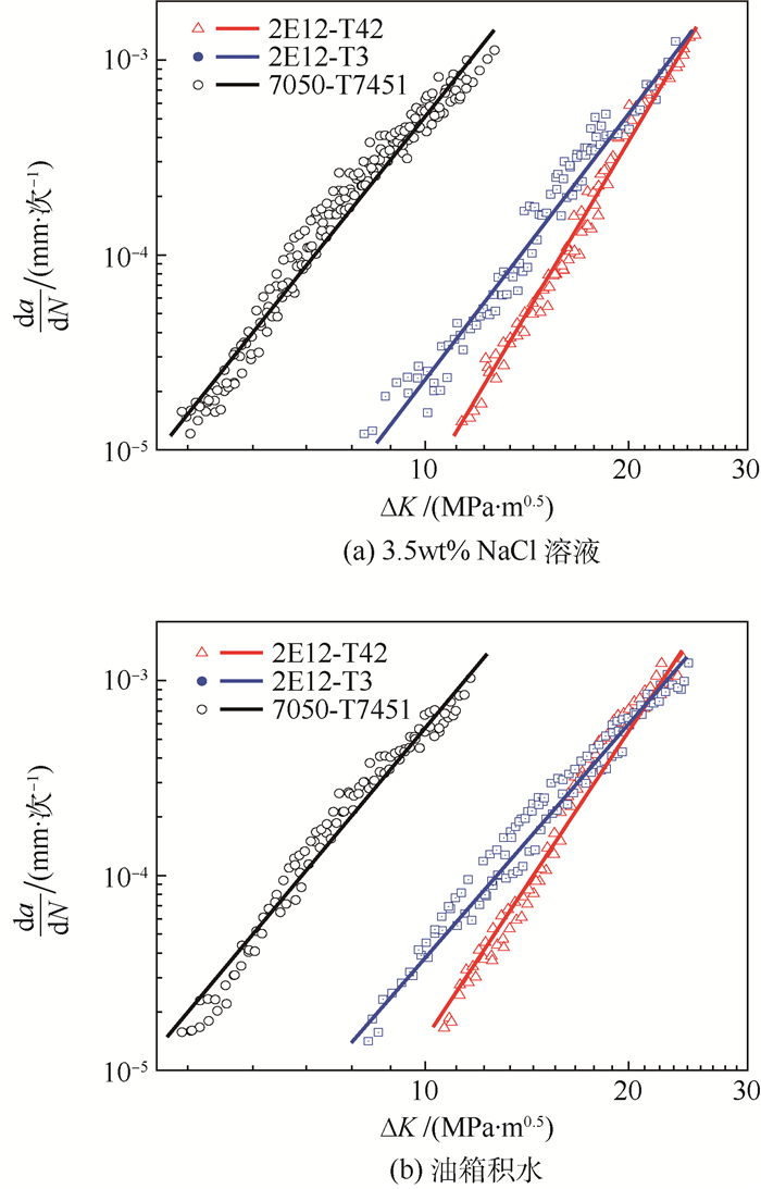 腐蚀环境下的裂纹扩展性能是航空金属结构损伤容限设计的重要前提,为此,试验测定了3种航空铝合金材料(即2E12-T3、2E12-T42和7050-T7451) 在2种腐蚀环境(3.5wt% NaCl溶液和油箱积水)下的裂纹扩展性能,在试验数据的基础上进行性能对比,并对试样断口进行SEM分析,研究了腐蚀和载荷联合作用对裂纹扩展的影响机理,研究结果表明:油箱积水环境对航空铝合金材料裂纹扩展的影响比3.5wt% NaCl溶液严重,铝合金2E12-T3和2E12-T42的腐蚀裂纹扩展性能优于铝合金7050-T7451,腐蚀环境下的氢脆效应和阳极溶解机制是造成腐蚀裂纹扩展加速的主要原因。