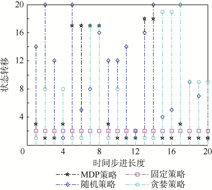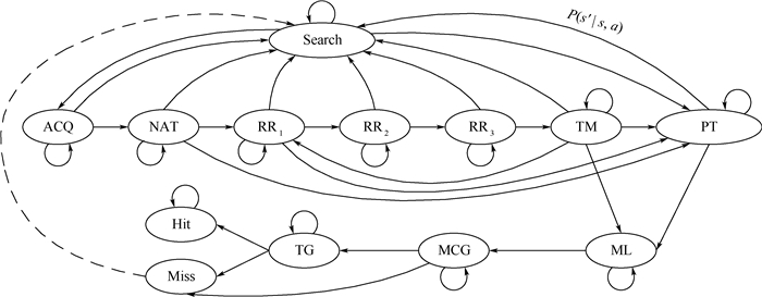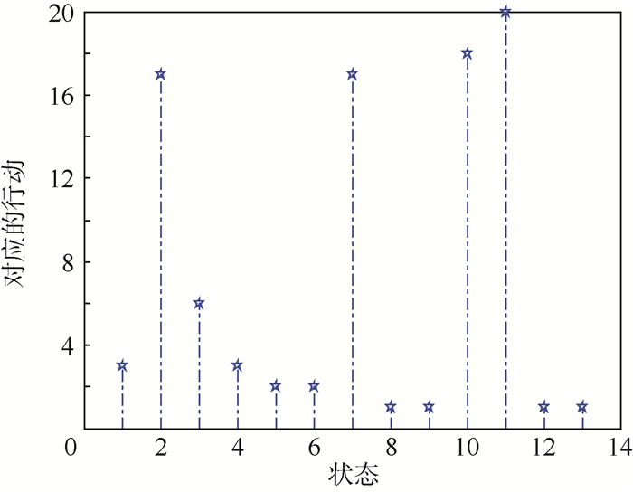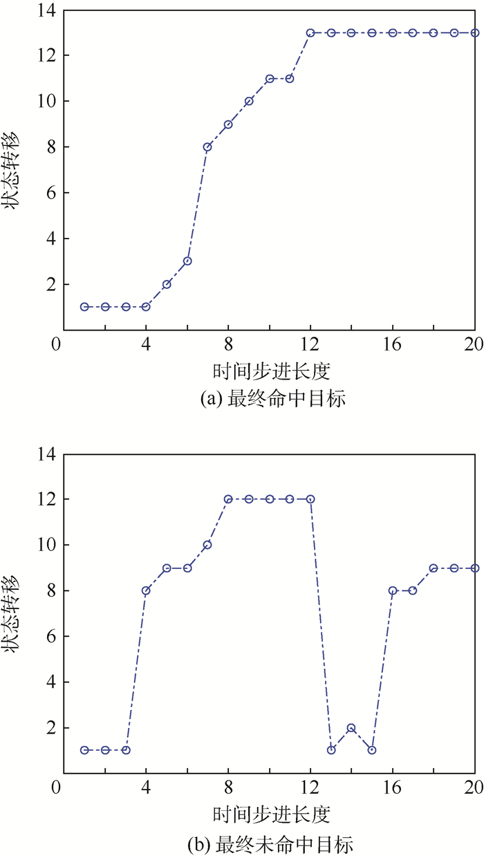 对战机对抗导弹的措施优化问题进行了研究,将该问题归结为不确定条件下的序贯决策问题,提出了一种基于Markov决策过程(MDP)的导弹对抗措施优化方法。首先, 该方法根据作战过程将作战阶段分为不同的状态,将电子对抗措施(ECM)和战术机动作为可供战机选择的行动;然后, 通过不同战术行动下状态之间的转移概率来反映行动的不确定性,以雷达搜索状态和导弹命中状态的期望值来表征不同策略下的飞机生存力;最后,通过建立Markov决策模型得到飞机生存力最大时各个状态对应的最佳行动。仿真结果表明:飞机生存力随着时间推移而逐渐降低;不同策略下飞机的生存力不同,基于MDP的策略可以有效提高飞机的生存力;单步优化措施不能提高战机的生存力,必须考虑长期状态转移的影响。