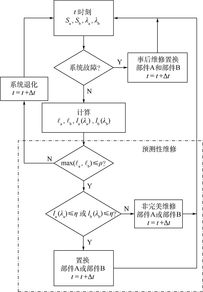 对于带有周期检测的系统进行维修优化时,不仅需要考虑系统自身可靠性信息,还应该充分利用检测数据并优化检测周期。以多状态并联可修系统为研究对象,考虑非完美检测和非完美维修,以降低系统运行成本率为目标实现系统检测和维修优化。利用非齐次马尔可夫链建立系统可靠性模型,对系统退化、检测和维修进行蒙特卡罗仿真。利用粒子滤波融合系统模型与检测数据并估计系统剩余寿命。设置寿命相关门限触发系统维修,以成本率期望仿真结果为目标函数,使用遗传算法优化检测周期和维修阈值。通过算例证明该方法可有效克服检测误差并实现检测和维修优化。