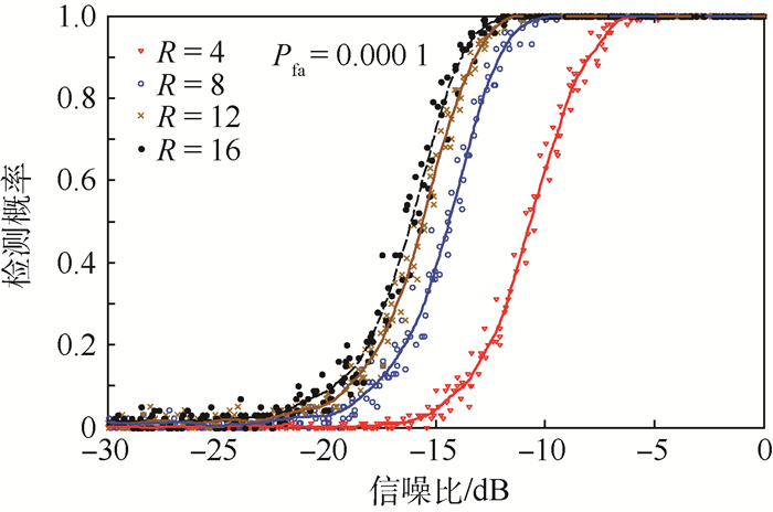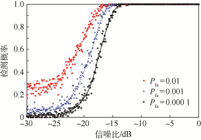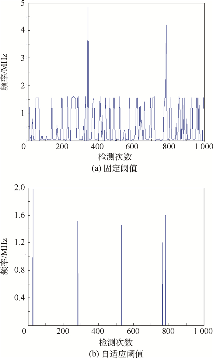 信号检测是激光多普勒测速(LDV)系统实现高精度的关键技术,针对LDV中微弱多普勒信号的检测,本文从噪声在频域中的统计特性出发,对多普勒信号进行带阻滤波,结合雷达的恒虚警(CFAR)检测技术,设计了基于频域的单元平方和自适应阈值检测算法以解决在低信噪比(SNR)的环境中LDV的信号检测问题,提高LDV的信号探测能力,同时降低其虚警概率。仿真与实验的结果表明:该算法与固定阈值相比可以在SNR为-12 dB时实现信号的完全检测,保持低虚警概率,运算简单,工程适用性强。