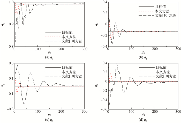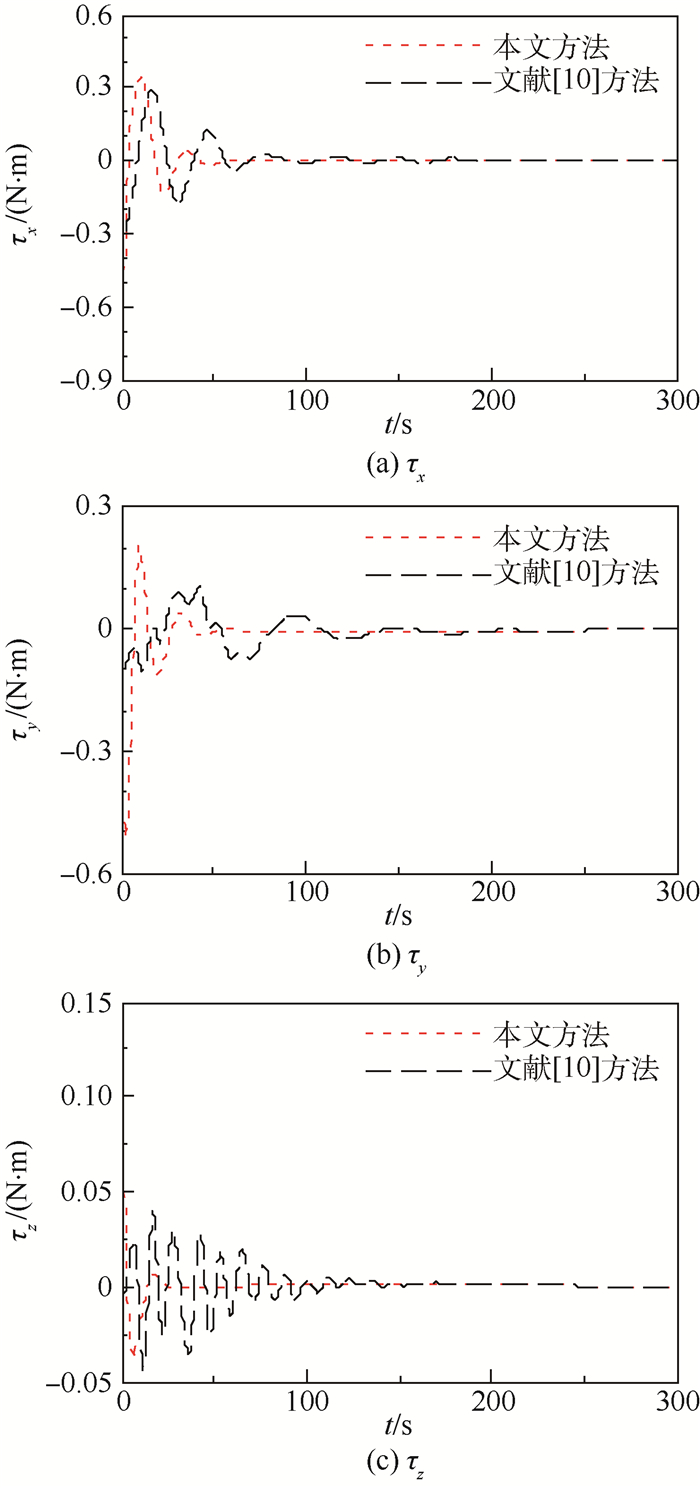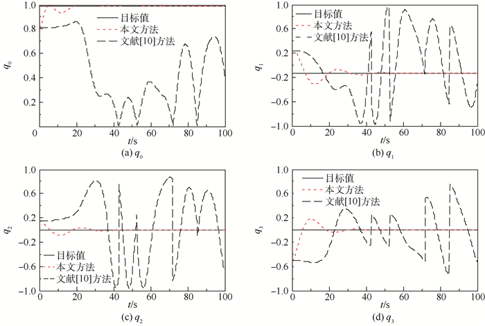 针对存在干扰力矩的航天器姿态控制问题,从能量角度提出一种基于端口受控哈密顿(PCH)系统模型的无源控制方法。通过将姿态控制系统表示为PCH形式,并增加与姿态误差积分有关的状态,利用互联和阻尼分配无源控制(IDA-PBC)方法进行控制器设计,使得闭环系统具有期望的内部互连结构关系和能量耗散特性,所提出的控制方案能保证系统的输入-状态稳定性。进一步,考虑执行器的动态特性,利用反步法对控制指令进行补偿设计,结合指令滤波技术避免对虚拟控制量高阶导数的计算,并从理论上证明了闭环系统一致最终有界。仿真结果验证了本文所提控制方法相比于单独基于无源性控制方法的性能优势。