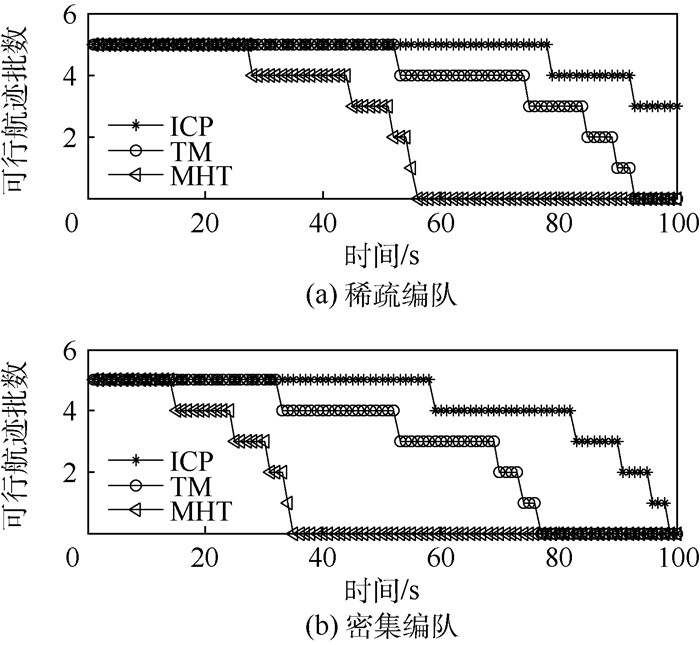 针对稳态编队在部分可辨条件下精细跟踪的难题,提出了一种基于迭代就近点(ICP)的稳态部分可辨编队精细跟踪算法。首先将ICP算法思想应用于编队成员拓扑的点航关联中,将k时刻的位置状态估计通过最近点循环迭代逼近k+1时刻的量测,在关联判决时采用双门限原则应对部分可辨所带来的漏观测问题,以提高关联时的容错性能;进而采用概率最近邻对漏观测航迹进行填补,以进一步保证跟踪的可靠性;最后,采用多模型法实现编队成员航迹滤波更新,以保证航迹的跟踪滤波精度。仿真结果表明,与现有的基于模版匹配的编队目标跟踪算法以及经典的多假设多目标跟踪算法相比,该算法具有较高的跟踪可靠性与精度,且在编队拓扑发生缓慢变化时具有更高的正确跟踪率。