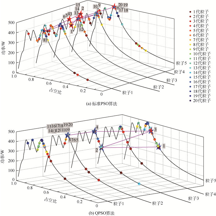 针对光伏发电系统中最大功率点跟踪(MPPT)算法在遮蔽情况下失效问题,提出了一种基于δ势阱的量子粒子群全局MPPT(GMPPT)算法。结合光照强度变化时的光伏多峰值出力特征,从光伏最大功率点变迁角度出发,分析常规MPPT算法存在搜索盲区的原因,说明GMPPT寻优必要性。提出一种提高粒子多样性、搜索速度及收敛精度的量子行为粒子群优化(QPSO)算法。在MATLAB/SIMSCAPE平台下,结合算例分析,对比标准粒子群优化(PSO)算法,验证所提优化算法在有效GMPPT的情况下,具有参数少、搜索快的特点,同时全局搜索能力强,防早熟效果明显,适用于GMPPT的实现。