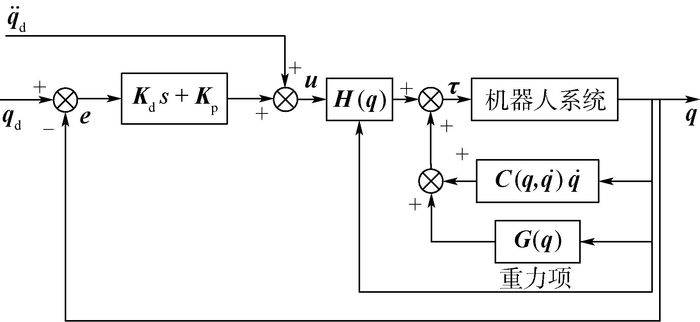 为了提高一种具有远程运动中心(RCM)机构的眼内手术机器人的定位精度和稳定性,在建立机器人坐标系的基础上,通过动力学等效,对机器人各构件质心瞬态位置进行分析。根据拉格朗日方程建立机器人动力学模型。提出基于计算力矩法的重力补偿方法。在此基础上,通过MATLAB/Simulink软件对重力补偿模型进行仿真。比较独立比例微分(PD)控制方法及重力补偿方法的各关节运动响应曲线,表明重力补偿模型可有效补偿重力项;同时,分析重力补偿模型响应曲线与期望曲线的误差,证明重力补偿模型具有较高的补偿精度和可行性。