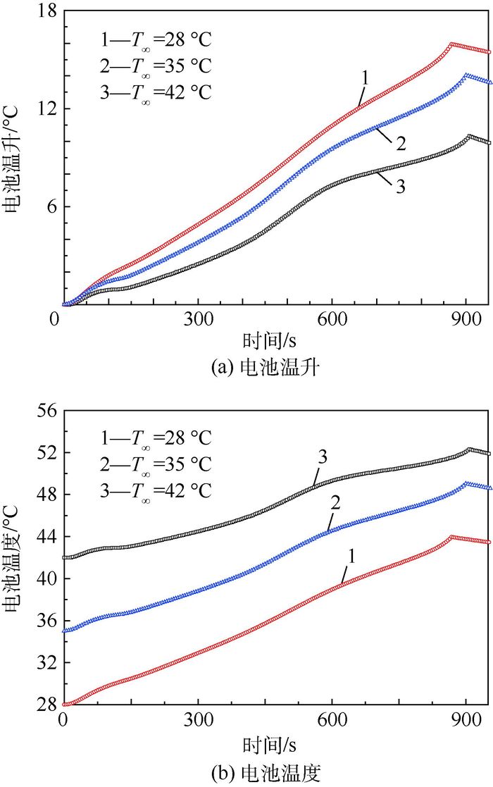 锂电池在高倍率充放电过程中会产生大量热量,此热量不及时散出会导致电池超温进而影响电池的使用寿命,甚至导致安全事故。本文设计了一种新型相变材料/风冷综合热管理系统(TMS),并对综合热管理方式下的电池温升特性进行了实验和理论研究。基于集总参数法,结合电池生热及散热机理,建立了电池发热功率计算模型以及相变材料/风冷综合TMS电池温度场数学模型,计算了电池单体发热功率,分析了环境温度、电池充放电循环初始温度、相变温度、对流热阻以及电池和相变材料之间的导热热阻对电池综合TMS性能的影响。结果表明:综合TMS的冷却性能优于纯风冷热管理系统;电池充放电过程为非稳态传热过程,因此较高的初始温度带来超温风险;电池温度场数学模型能准确反映电池升温行为;较高的环境温度下,电池最大温升幅度降低,但可能导致电池最高温度超过安全温度;相变材料的相变温度越低,电池最大温升越低;减小导热热阻及对流热阻能显著提高TMS性能。