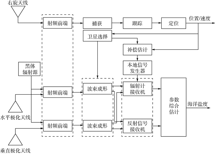 全球导航卫星系统反射计(GNSS-R)是近年来兴起的一种被动式遥感手段,可用于提高海洋盐度(SSS)反演精度。首先,在回顾辐射计亮温模型和GNSS-R散射功率模型,并建立星载仿真场景的基础上,研究了GNSS-R辅助辐射计探测海洋盐度的性能,使辐射计工作于GPS L1频点1 575.42 MHz时,通过共用天线和射频前端可以降低星载设备的质量和功耗,但对海洋盐度大于25 psu的条件下,垂直和水平极化的亮温对海洋盐度的灵敏度分别下降约0.1和0.08 K/psu;其次,分析了GPS L1反射信号对辐射计的干扰,发现在仿真场景下当辐射亮温变化1 K时,GPS L1反射信号引入了小于2.5×10-4 K的误差;再者,讨论了不同入射角情况下定义的垂直和水平极化的GNSS-R观测量对亮温校正量的灵敏度,结果表明随入射角增大,水平、垂直极化信号的观测量对亮温校正量的灵敏度分别呈现下降和上升趋势;最后,分析了定义的GNSS-R观测量对亮温校正量的灵敏度与空间分辨率之间的关系,得出了高灵敏度、高空间分辨率反演算法的研究对星载GNSS-R辅助辐射计海洋盐度探测至关重要的结论。