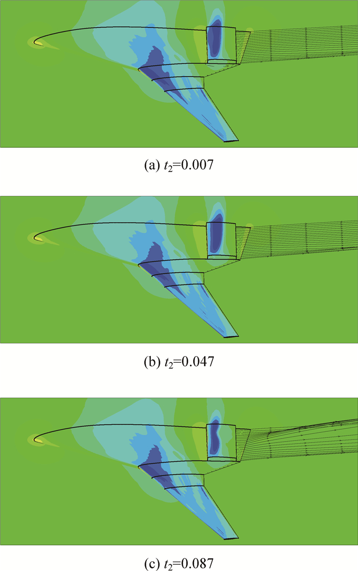 整流罩设计对基于分布式动力的翼身融合(BWB)飞机气动特性会产生显著影响。为了揭示在边界层吸入(BLI)效应下整流罩的设计参数对飞机气动特性的影响及其原因,采用计算流体力学(CFD)方法和Morris敏感度分析法对此布局飞机气动特性进行了详细研究,得到了整流罩主要设计参数对飞机气动特性影响的敏感度和耦合关系,并对典型设计参数下的流动特性进行分析。结果表明:对飞机气动特性影响较大的参数是整流罩特征截面2和3的最大厚度,这是因为其增大了当地截面的厚度和弯度,进而影响了整流罩表面的压力分布;在流量系数减小和进气边界弦向位置前移时,最大厚度增大会造成背风面发生局部分离;整流罩特征截面2和3的最大厚度对气动特性具有较强的耦合影响。