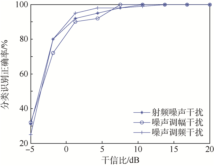 针对干信比未知情况下有源压制干扰分类识别结果可信度较低的问题, 提出了一种基于FRFT域特征差异的压制干扰检测与分类算法。首先, 通过FRFT域峰值阶次的序贯判决算法, 进行压制干扰的存在性检测, 以保证压制干扰分类识别在较高的干信比条件下进行; 然后, 在此基础上, 分别提取回波信号在FRFT域的极值阶次标准差和峰值阶次标准差作为分类识别特征量, 同时, 为避免硬判决造成的分类错误, 采用模糊判决的方法得到基于不同特征参数的分类识别结果; 最后, 按一定准则将2种分类识别结果进行融合, 以进一步提高分类识别正确率。仿真结果表明, 与现有压制干扰分类识别算法相比, 该算法较好地解决了分类识别结果可信度较低的问题, 同时具有较高的分类识别正确率。