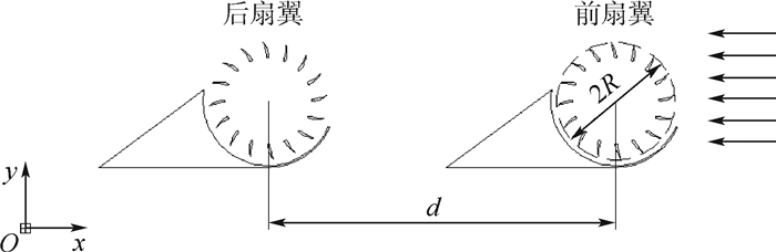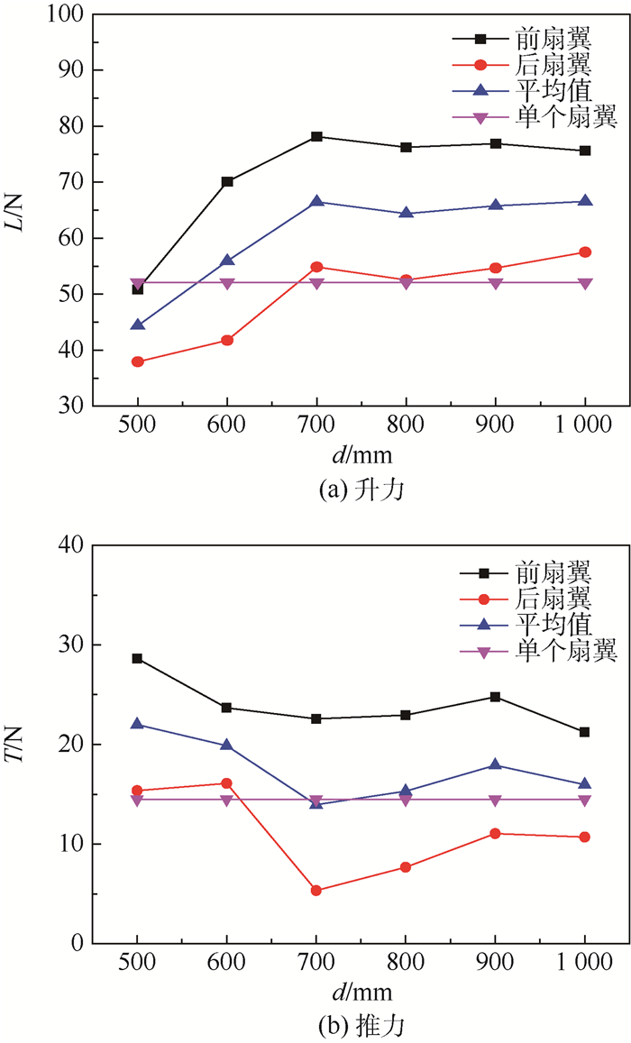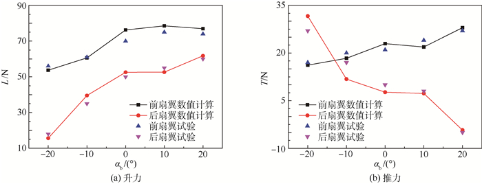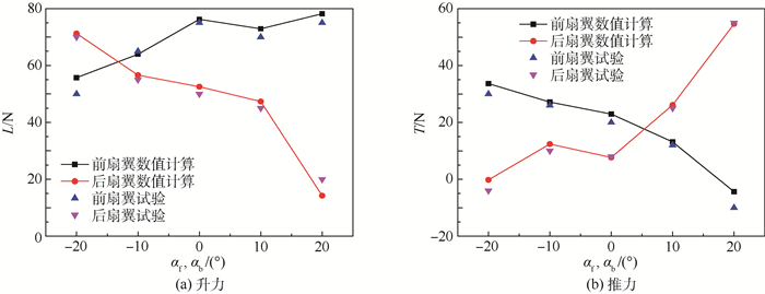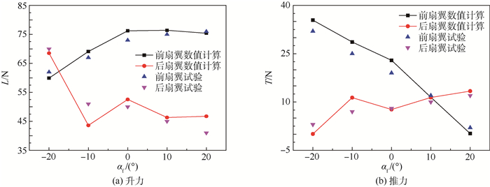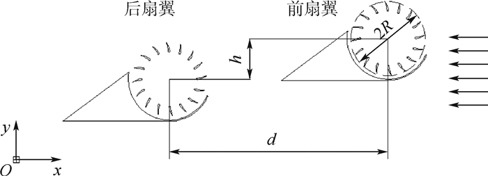 扇翼飞行器是一种新概念新原理飞行器, 尤其是其具有独特空气动力学原理。扇翼能够同时产生升力和推力, 为了进一步改善扇翼的气动特性, 在不改变扇翼基本几何参数的前提下, 沿机身纵向布置前后2个扇翼, 组成了纵列式双扇翼飞行器。通过数值模拟的方法, 计算了前后扇翼间距、高度和安装角变化时的扇翼升力和推力值, 分析了前后扇翼气动特性相互影响的规律。此外还设计了纵列式双扇翼的风洞试验模型, 将获得的风洞试验结果与数值计算结果进行了初步的对比验证。结果表明, 在一定前后扇翼间距、高度和安装角下, 纵列式双扇翼的气动力相比单个扇翼更具优势。因此, 纵列式双扇翼布局的飞行器具有很好的发展前景和应用优势。