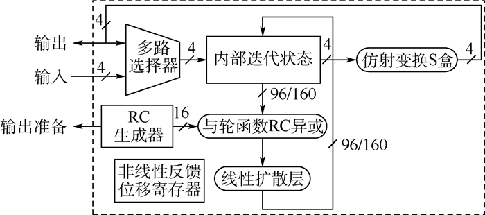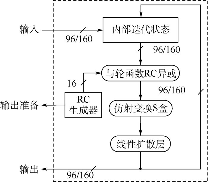 针对轻量级杂凑函数的线性层结构单一易受统计饱和攻击的问题,提出一种以海绵结构为主体,内部置换函数为仿射变换S盒结构的轻量级杂凑函数。仿射变换后的S盒继承了原S盒良好的密码特性,同时在很大程度上弥补了线性层结构过于简单的不足。根据最优4 bit最优S盒仿射等价类的具有最大差分概率的差分对个数、具有最优线性逼近关系的掩码个数及最大分支数确定了仿射变换S盒原型;通过差分及线性密码分析、统计饱和攻击分析了内部置换结构的安全性;设计了仿射变换结构的控制逻辑及算法整体的串/并行硬件实现方案,并在Design Compiler上进行了综合验证。结果表明,基于仿射变换S盒的轻量级杂凑函数在只加入了一些简单控制逻辑的情况下,提高了统计饱和分析中追踪特定比特位扩散路径的难度,即仿射变换结构增加了线性扩散层的混淆性,优化了其抗统计饱和攻击的能力。