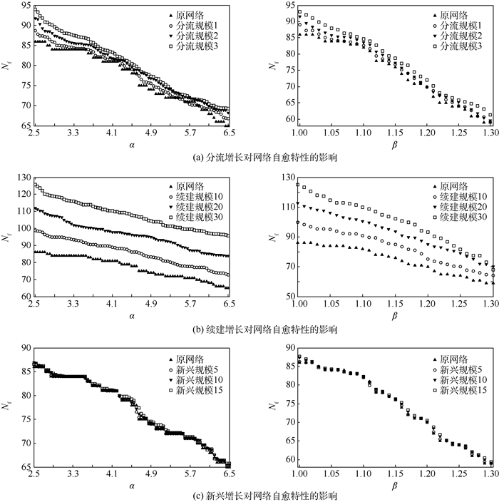 结合复杂网络理论,从能量的角度分析了航空网络的功能自愈机理,并研究了航空网络在不同增长机制下的自愈特性。首先,将网络结构划分为自愈结构与耦合结构,并针对航空网络3种增长机制进行了分析和抽象建模;然后,从网络全局角度出发研究了美国航空网络在遭受蓄意攻击造成全网功能瘫痪的情况下,网络功能的恢复鲁棒性和网络增长对网络自愈能力的影响。研究表明,美国航空网络具有较好的恢复鲁棒性,接近80%的机场在受到能量冲击造成的短暂失效后具有功能自愈能力。航空网络不同的增长机制对网络的自愈能力有着不同的影响。结果证实,为完善航空网络而建立的机场群,由于其较大的连接需求,加大了网络区域密度,复杂了网络拓扑结构,降低了网络的自愈能力;而小型机场的增加不会影响网络整体的自愈能力。