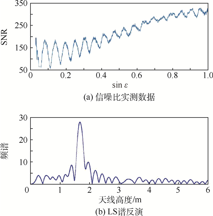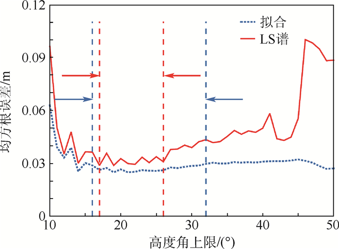 提出利用全球导航卫星系统反射信号的干涉方法(GNSS-IR)进行测高。深入分析全球导航卫星系统反射信号的多径信号模型(GNSS-MR),在此基础上提出单天线测高模型,旨在获取多径信号信噪比(SNR)频率信息,从而反演出高度信息。Lomb-Scargle(LS)谱分析方法是单天线测高模型中常用的频率提取方法;提出了基于解析模型拟合的方法对多径信号信噪比数据提取频率,同样可以准确获取频率信息,从而反演出天线到地面的高度。在此基础上,讨论了单天线测高的最大测量高度和接收机需要满足的最小输出率。由实验数据分析得出:传统LS谱分析方法和拟合法在反演效果最优时,即LS谱分析方法在高度角上限为17°时,均方根误差为0.028 75 m;拟合法在高度角上限为21°时,均方根误差为0.024 85 m。通过比较不同高度角上限的均方根误差,可以获得最优化的高度反演条件,同时也表明了拟合法的可行性。