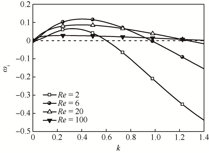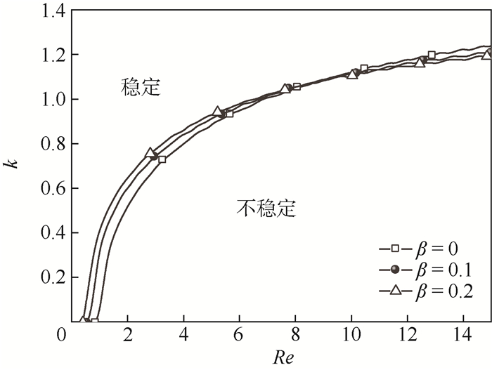 针对沿多孔壁面流动的牛顿流体液膜进行线性稳定性分析,特别考虑中等雷诺数的情形。认为多孔壁面处的流动满足Beavers-Joseph滑移边界条件,采用动量积分方法,得到色散关系和中性稳定曲线。多孔壁面的渗透性促进了液膜流动的不稳定,加快了液膜表面波的移动。随着雷诺数增大,中等雷诺数范围的最大增长率呈现先增大后减小趋势。最大增长率极值和不稳定波数区域与壁面渗透性有关。通过能量分析探究多孔介质渗透性对流动稳定性的作用机理,多孔壁面滑移速度的存在使得平均流速增大,速度梯度减小,导致黏性耗散减小从而促进流动失稳。