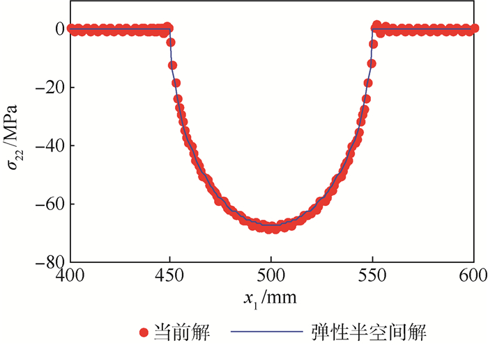 针对线性各向异性弹性体小变形接触问题,将弹性体按是否与刚体压头发生接触进行划分,基于Eshelby-Stroh公式求解各个部分的位移函数和应力函数,进一步通过应力函数积分得到载荷值。考虑到求解结果存在交接处应力突变和非接触区域应力不近似于零的问题,采用整体位移约束法和线性叠加原理,通过迭代方式使位移函数和应力函数逼近理想解,解决了圆柱压头和倒圆角楔形压头与弹性体的接触问题。基于圆柱压头求得的载荷值接近弹性半空间法的求解结果,当级数总项数为400时,计算结果的相对误差仅为0.52%。基于圆柱压头和倒圆角楔形压头求得的载荷值与ABAQUS仿真结果较为吻合:圆柱压头载荷值的相对误差为0.67%;倒圆角楔形压头,对6个不同的圆角值进行计算,载荷的相对误差都小于2%。