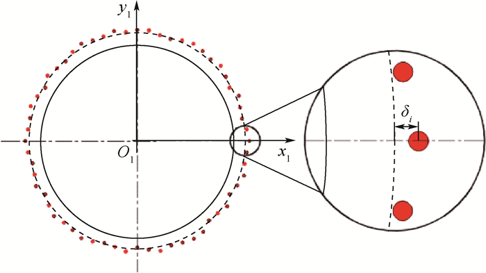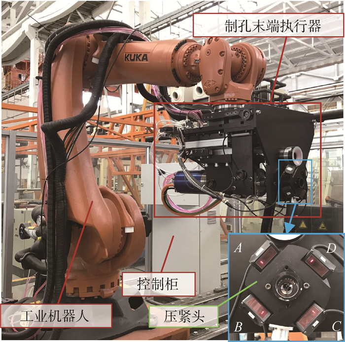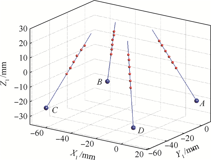 激光测距传感器常用于飞机壁板法向检测。为了解决激光测距传感器加工和安装误差导致的法向检测精度下降问题,提出和实施了一种利用几何数学模型和最小二乘法进行激光测距传感器光束矢向和零点位置标定的方法。首先,利用角度标定理论获取激光束与主轴进给方向的夹角。然后,借助激光跟踪仪建立坐标系,根据激光测距传感器射在与电主轴进给方向成不同夹角的平面上的测量值,利用几何数学模型计算出各激光点之间的相对坐标,运用最小二乘法拟合出激光束的空间方程,进而得到光束矢向和零点位置。最后,在航空制孔机器人平台上进行标定实验,并且根据标定结果进行了实验验证。实验结果证明:该方法能够较为准确地标定出激光测距传感器的光束矢向和零点位置,可使法向检测精度在0.18°内。