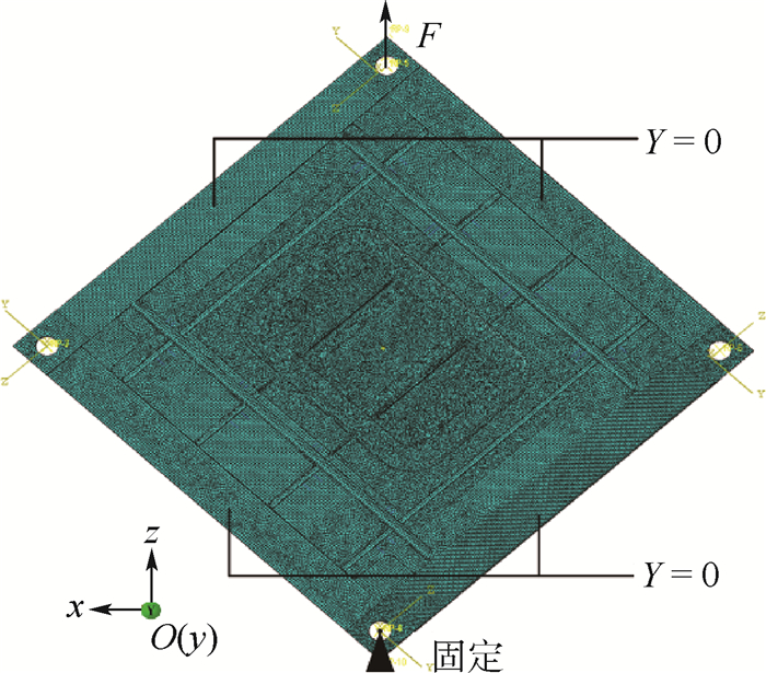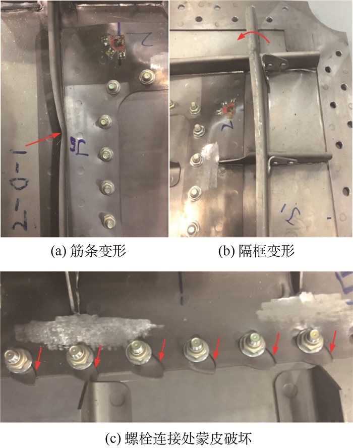 针对双光束激光焊接带口盖加筋壁板开展了剪切稳定性试验,分析了带口盖加筋壁板在受剪状态下的屈曲载荷、屈曲形式、后屈曲承载能力及破坏形式。建立了壁板与剪切夹具的有限元模型,对壁板的剪切失稳形式及后屈曲承载能力进行仿真计算,并探究了口盖对加筋壁板的承载能力、应力变化及面外变形的影响。结果表明:带口盖加筋壁板在剪切状态下,当屈曲比达到1.95时,加筋壁板进入后屈曲,最终破坏载荷约为屈曲载荷的2.98倍。仿真与试验得到的载荷-位移曲线较为吻合,有限元法得到的屈曲载荷和破坏载荷与试验平均值误差分别为8.7%、1.02%。开口壁板的承载能力及刚度均下降,螺栓紧固口盖对加筋壁板的应力与面外变形影响较大。
