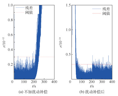 针对卫星姿态控制系统执行器微小故障检测问题,提出一种基于神经网络干扰观测器的微小故障检测方法。该方法利用卫星姿态控制系统内的冗余关系,分别构建陀螺干扰观测器和干扰力矩观测器,对系统内的测量误差、扰动等进行估计,并对故障检测观测器进行扰动补偿,提高对执行器微小故障的检测能力。仿真结果表明,与基于解析模型的方法相比,该方法能够较精确地对解析模型的误差进行补偿,明显降低了检测阈值,实现了对扰动掩盖下的微小执行器故障检测。