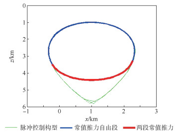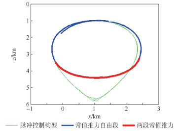 针对航天器编队飞行任务对相对运动控制的要求,研究了在分段常值推力控制下航天器受迫绕飞构型的设计与控制问题。首先,基于脉冲控制下的水滴悬停构型,提出了多段常值推力控制实现水滴悬停构型的打靶方程;将打靶方程转化为求解极值问题,采用最小二乘法来求解;分析了一段常值推力可行性。然后,以连续常值小推力控制方程为基础,推导了小邻域定理,分析了近距离相对运动条件下两段常值推力控制的可行性;针对可能出现求解精度差的问题,提出了小推力增量方程来修正精度,并证明在靠近理想解的情况下多次迭代可以趋近于理想解。最后,通过数值仿真实现常值小推力控制下的水滴悬停相对运动。数值仿真结果表明常值小推力控制策略可行,研究成果完善了航天器受迫绕飞构型设计与控制的相关理论,为工程应用提供参考。