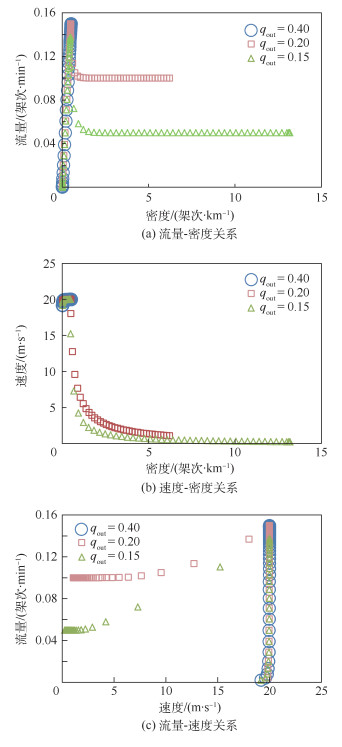 滑行道是连接跑道和停机坪的纽带,是大型机场航空器场面运行的关键资源。随着场面航空器数量的不断增加,航空器在滑行道区域涌现出特有的交通流特性。基于滑行道航空器运行规则,结合元胞传输模型(CTM),建立宏观的滑行道航空器交通流元胞传输模型,在NetLogo系统动力学仿真平台的基础上,以中国某大型机场滑行道航空器运行为例对模型进行验证,推理滑行道交通流基本参数之间的关系和相变特征。研究表明,滑行道交通流在自由流、同步流和阻塞流3种相态中演变,其中在同步流相态中,随着密度增加,流量从0.15降至0.10架次/min,速度从20降至7.64 m/s,说明流量和速度参数对于密度的变化十分敏感。当离场率与进场率的比例从0.2降至0.15时,3种相态下的临界流量从0.15、0.10降至0.13、0.05架次/min;临界速度在自由流不变,同步流和阻塞流中依次从7.64、1.07降至0.88、0.25 m/s;临界密度在自由流由0.50降至0.46架次/km,而在同步流阻塞流中依次从0.88、6.21增加至3.77、13.17架次/km。本研究揭示滑行道交通流拥堵演变机理,为制定科学合理的滑行道管理控制策略提供理论基础。