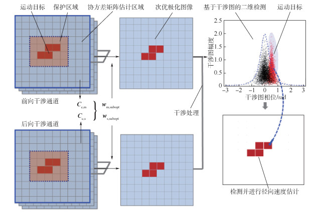 为改善干涉合成孔径雷达(SAR)系统对慢动小目标的检测性能,研究了全极化顺轨干涉SAR(AT-POLINSAR)实现慢动目标恒虚警(CFAR)检测的方法。首先,通过对单基线AT-POLINSAR的系统设计,明确了其在现有技术条件下的可实现性,并对其信号形式与极化干涉回波进行了建模分析。然后,针对AT-POLINSAR 6维极化干涉矢量提出了以背景杂波平均相干度为优化准则的极化降维新方法,构建了一种统计分布类型与单极化干涉数据相同的次优极化标量干涉回波,从而使目前单极化顺轨干涉SAR(AT-INSAR)慢动目标CFAR检测方法可直接扩展至全极化情形。最后,通过检测实验对次优极化与单极化的慢动目标检测性能进行了对比分析。结果表明,次优极化方法能充分利用全极化信息提高INSAR对慢小目标的检测概率。
