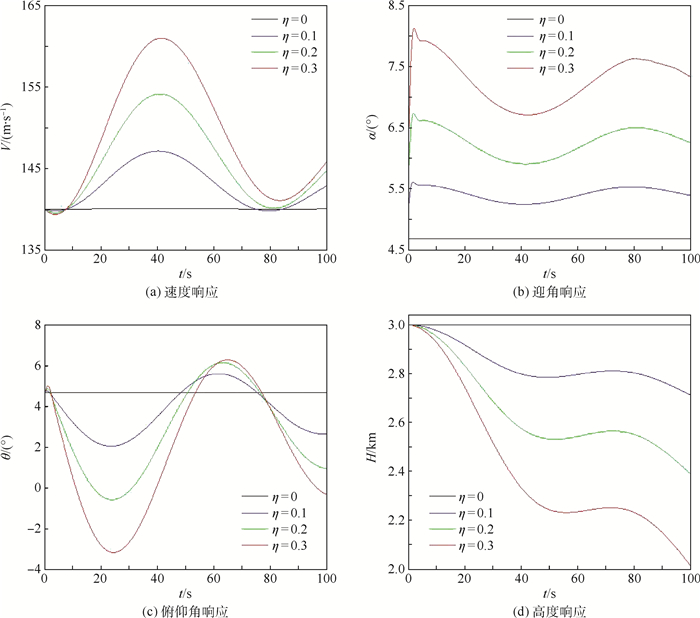 针对变体飞行器变形过程的控制问题,将切换系统理论与多变量自适应控制理论相结合,提出了一种基于切换系统的鲁棒自适应控制器设计方法。首先,建立了变体飞行器纵向短周期线性切换模型,描述了飞行器的整个变形过程;然后,设计了一种改进的鲁棒自适应控制律,抑制了各类干扰和不确定性对系统的影响,实现了切换系统对参考模型的良好跟踪;最后,提出了一种基于模型依赖驻留时间(MDDT)的切换控制律,保证了变体飞行器在变形切换过程中的稳定性,利用Lyapunov函数方法证明了本文方法最终一致有界。仿真验证表明,在存在外部干扰和各类不确定性的情况下,本文方法能保证飞行器在变形过程中精确跟踪参考模型,且具有较好的抗干扰能力。