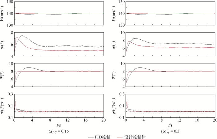 针对飞机结冰条件下的飞行安全问题,在线性结冰影响模型的基础上构建了非线性结冰影响模型,并建立了结冰飞机纵向非线性动力学模型。利用反馈线性化理论与模糊控制原理相结合,重构设计了结冰条件下的纵向控制律,既保证了动态响应特性,又改善了控制器的抗干扰能力,使飞机具备一定的容冰飞行能力。通过仿真模拟了飞机在不同结冰严重程度以及干扰下的纵向响应,并与常规PID控制进行对比,验证了设计控制律的有效性和抗干扰能力。结果表明,该设计方案下的各状态参数动态响应均能较快较好地收敛,能更精准快速地跟踪俯仰角指令,且抗干扰能力、动态性能均优于常规PID控制。