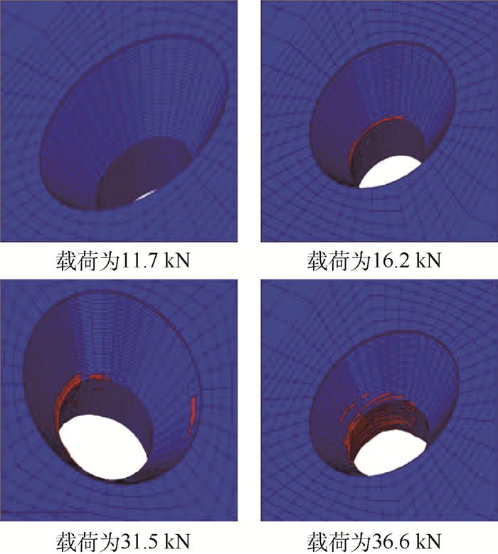 对带衬套沉头螺栓连接复合材料/金属接头进行拉伸试验,测量了接头的载荷-位移曲线和面外变形等性能,研究了接头的拉伸行为。利用ABAQUS软件,建立了接头的有限元模型,计算得到的条件挤压载荷、极限破坏载荷和破坏模式与试验结果吻合较好,证明了所建有限元模型的有效性。利用该模型,分析了接头破坏的机理,并进一步研究了螺栓与衬套过盈量、拧紧力矩和钛板厚度等因素对接头拉伸性能的影响。结果表明:适度的增大螺栓与衬套的过盈量能有效提高接头的刚度和强度;在一定范围内增加拧紧力矩能提高接头的承载能力;增加钛板的厚度,对接头的刚度有明显提升,但对极限破坏载荷影响较小。