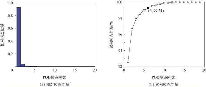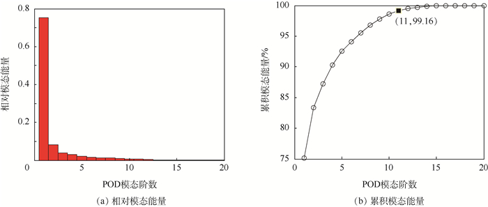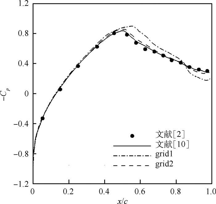 跨声速翼型的激波周期性自激振荡会给机翼结构带来附加的脉动载荷,从而加剧飞行器表面结构的疲劳损伤。使用动态模态分解(DMD)方法研究了跨声速下绕厚度18%的对称双圆弧翼型的压力脉动场,分析了DMD提取的各阶主模态的频率特征、压力脉动的空间分布以及压力脉动随激波振荡的时间演化过程,并使用DMD模态进行流场重构。结果表明,DMD方法能准确捕捉流场各特征频率的模态,第1阶模态是激波抖振的主频,在激波的自激振荡过程中占主导作用,前7阶模态重构的流场损失函数降低至4%以内,误差主要分布于激波间断处。