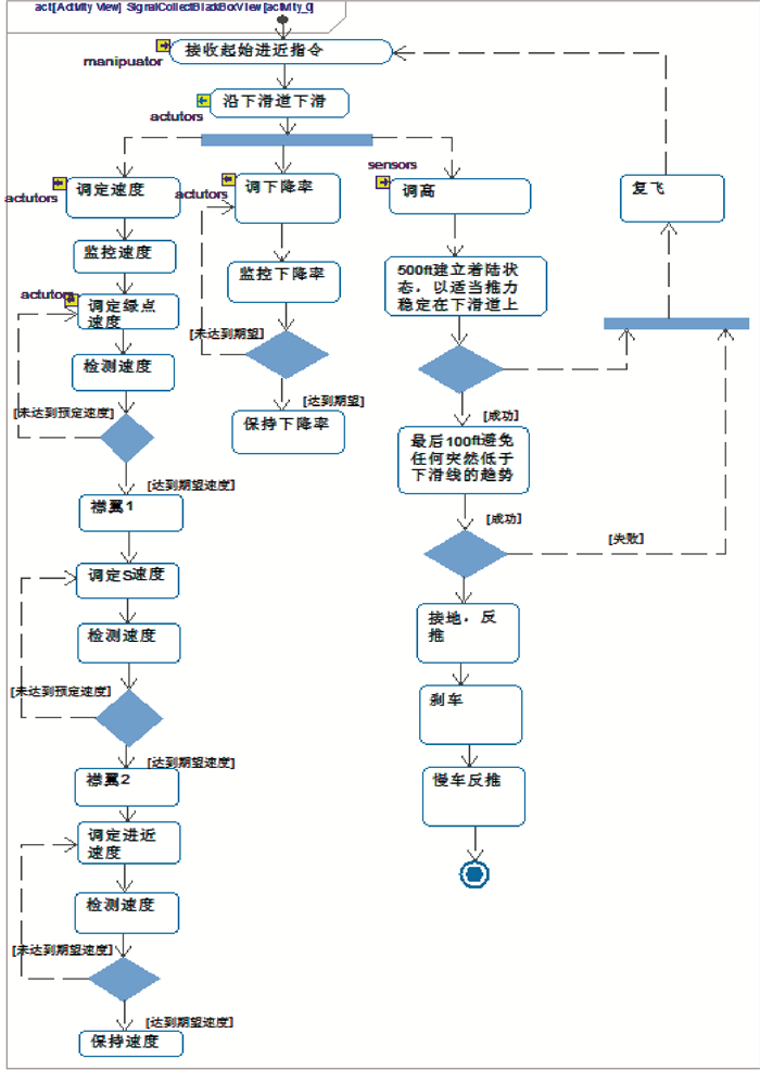 基于模型的系统工程(MBSE)理论越来越广泛地应用于民用飞机设计与功能需求分析领域。研究起始于基于用户需求的自顶向下的民机系统产品顶层用例,辨识相关关键子用例,进一步基于对象用例展开“需求—功能分析”,构建黑盒活动图、顺序图表达实现相关飞机级需求的黑盒功能流,从而明确系统接口和辨识子系统,构建经验证可靠的可进行逻辑仿真的黑盒状态机。在黑盒功能架构的基础上驱动基于人机交互系统模型仿真的民机功能架构“正向设计”过程,对黑盒进行解白,基于建模分析和数值仿真结果,构建实现相关飞机级需求的系统功能白盒架构的“正向设计”。为充分演示上述方法,选择了对民用飞机产品安全性具有关键影响的最后进近着陆场景用例作为案例模型。研究表明,基于MBSE的民用飞机功能架构设计方法充分保证了需求分析和功能架构设计的紧密结合,正向构建了以满足民机产品需求为导向的结构化系统设计方法。