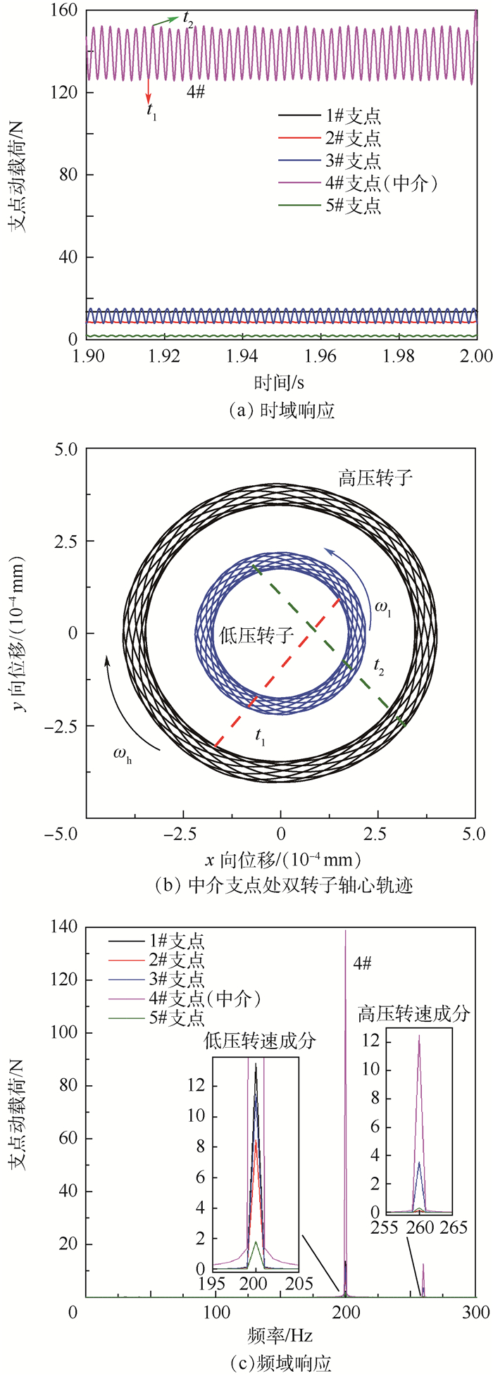 针对高推重比涡扇发动机中带中介轴承复杂转子系统的支点动载荷振动响应及优化设计问题,建立了转子系统支点动载荷力学模型,研究在不同转速下,不平衡量、转子弯曲变形及轮盘惯性载荷等因素对支点动载荷的影响。计算分析了双转子系统支点动载荷随转速变化规律,揭示了高速双转子系统中介支点动载荷与转子弯曲变形及轮盘惯性载荷的关系,并提出了基于转子弯曲变形弹性线斜率控制的双转子系统支点振动响应优化设计方法。结果表明,通过优化高压涡轮后轴颈结构、调整低压涡轮后支点靠近中介支点,可以有效减小中介支点动载荷的大小和不平衡量对其影响的敏感度,为具有中介支点的复杂转子系统支点振动响应优化设计提供了理论方法。