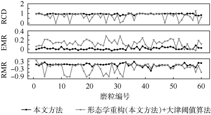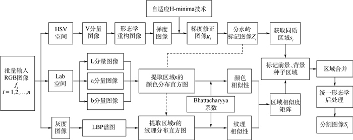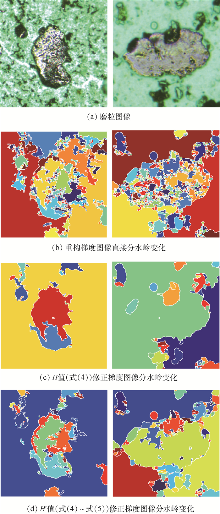 为了提高油液磨粒图像的分割效果,优化磨粒自动识别工作的重要环节,提出了一种结合分水岭算法及区域相似度合并的油液磨粒图像自适应分割方法。对于待分割图像,首先通过形态学重构和基于形态学的自适应H-minima技术对梯度图像进行修正,利用分水岭算法完成磨粒图像的一次分割;其次提取分水岭分割后同质区域的Lab颜色特征、局部二值模式(LBP)纹理特征作为区域的量化指标,基于Bhattacharyya系数分别计算区域间的颜色、纹理相似度,设计可以实现权重自适应调整的颜色、纹理特征融合规则,以此来获取同质区域的综合相似度矩阵,实现过分割区域的合并;最后基于统一的后处理算法完成磨粒图像的完整分割。选择60幅磨粒图像对所提方法的分割效果进行测试,结果表明,单幅图像的平均分割速度在12 s左右,分割正确率稳定在90%以上,所提方法避免了用户在分割过程中对图像的交互式处理,较好地平衡了分割效率和分割精度,自适应程度明显提高。
