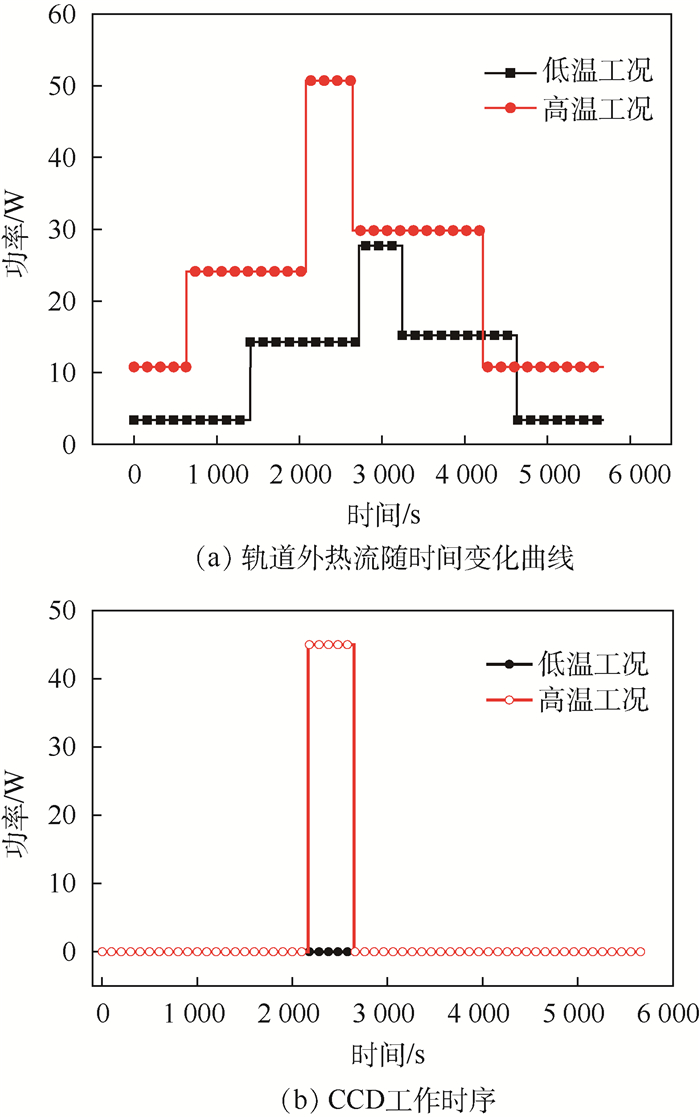 电荷耦合元件(CCD)作为航天光学遥感器的核心部件之一,其工作性能受温度影响很大,传统的热控产品难以满足大功率CCD的精密控温需求。通过仿真与试验系统研究了机械泵驱动两相流体回路(MPTL)用于CCD控温时的启动特性、运行状态、内部工质的流动及传热特性。结果表明:MPTL可以通过干度的调节来吸收冷凝器外热流和CCD工作模式的影响;MPTL的控温精度可以达到±1℃,蒸发器并联支路、蒸发器负载和冷凝器温度在一定范围内变化等均不会对系统运行稳定性产生影响,其仍可将CCD器件控制在所需温度;通过仿真与试验对比,发现仿真模型的误差在±1℃以内,验证了模型的有效性和准确度。MPTL可以很好地满足航天光学遥感器CCD的控温要求,能够保证CCD始终具有较好的温度稳定性和均匀性,且系统具有良好的运行特性和鲁棒性,其在CCD精密控温方面具有很好的应用前景。