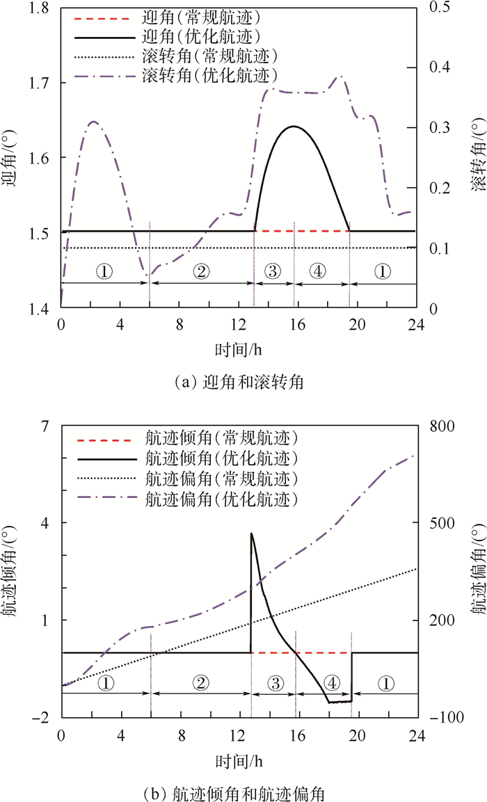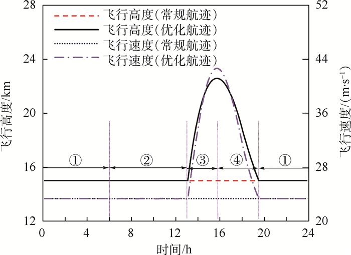 为提升高空太阳能无人机的飞行性能和载荷能力,综合考虑无人机运动状态和能量获取、存储、消耗之间的耦合关系,建立了三维航迹优化模型。采用高斯伪谱法在离散点上近似状态变量和控制变量,且在一系列配点上满足动力学方程的约束,将最优控制问题转化为非线性规划问题。针对典型的点到点飞行任务开展了航迹优化,并与常规定高定速航迹进行了对比。结果表明:通过调整飞行姿态,可以使高空太阳能无人机的净吸收能量提高9.2%;综合调整飞行姿态和改变飞行高度两种措施可以获得更大的能量优势,使储能电池剩余电量提高18.8%。