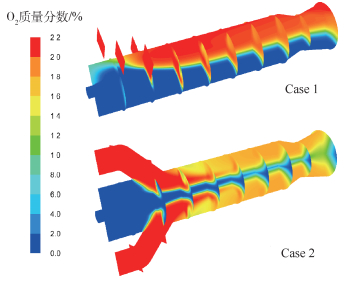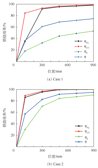 为研究进气道结构对固体冲压发动机补燃室燃烧及内壁烧蚀的影响,采用标准k-ε湍流模型,单步涡耗散燃烧模型与KING硼粒子点火燃烧模型,开展了双下侧90°进气结构和双侧180°进气结构固体冲压发动机补燃室内燃气燃烧数值模拟,对比分析了补燃室燃气燃烧流场特征和内壁烧蚀环境特征。结果表明:双侧180°进气结构在补燃室中形成大漩涡,有利于燃气与空气的掺混燃烧,至补燃室出口位置,总燃烧效率超过90%,且该结构有效减少了粒子对内壁的冲刷侵蚀;在双下侧90°进气结构补燃室中,凝聚相粒子和燃气贴近补燃室一侧运动,导致氧气浓度和温度分布不均,不利于燃气的掺混燃烧,总燃烧效率为74%,在远离补燃室进气道一侧形成高温热烧蚀、高浓度粒子侵蚀、高速射流冲刷和热应力集中的综合破坏;双侧180°进气结构的固体冲压发动机补燃室总体性能优于双下侧90°进气结构的冲压发动机补燃室。