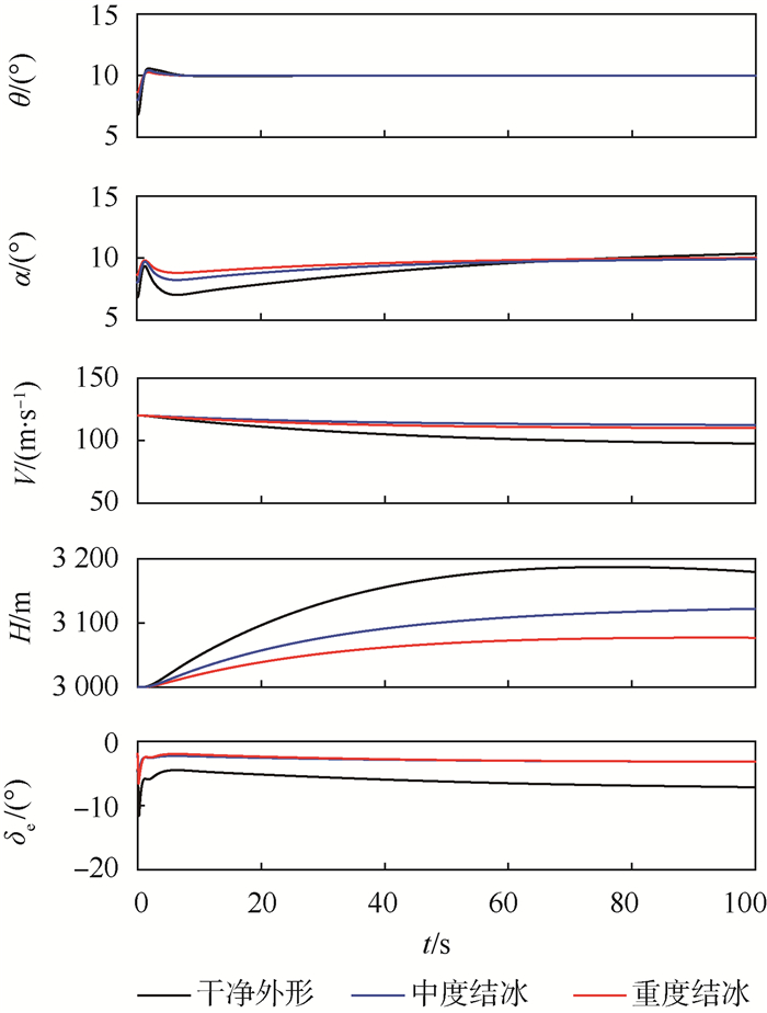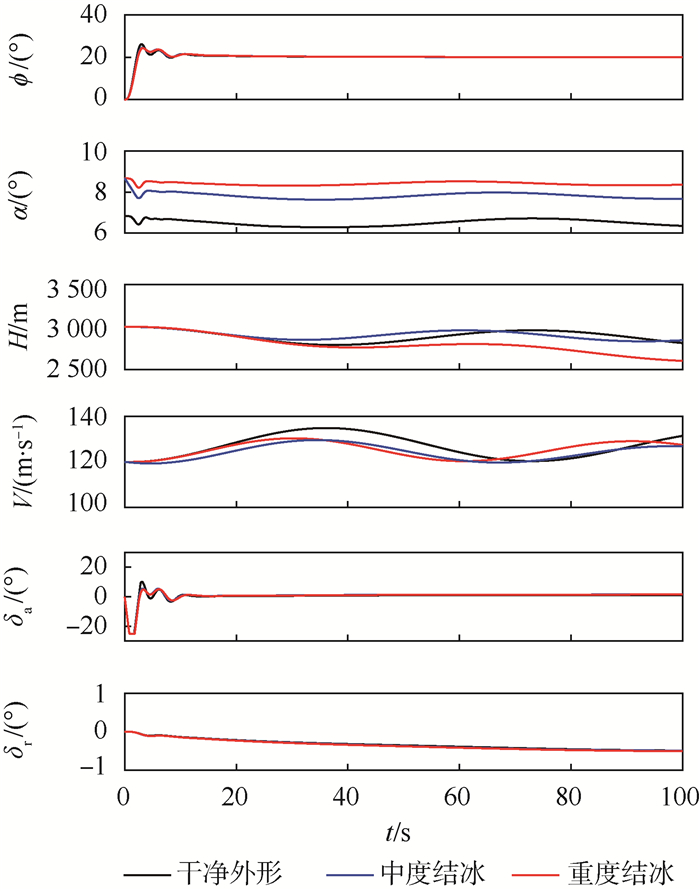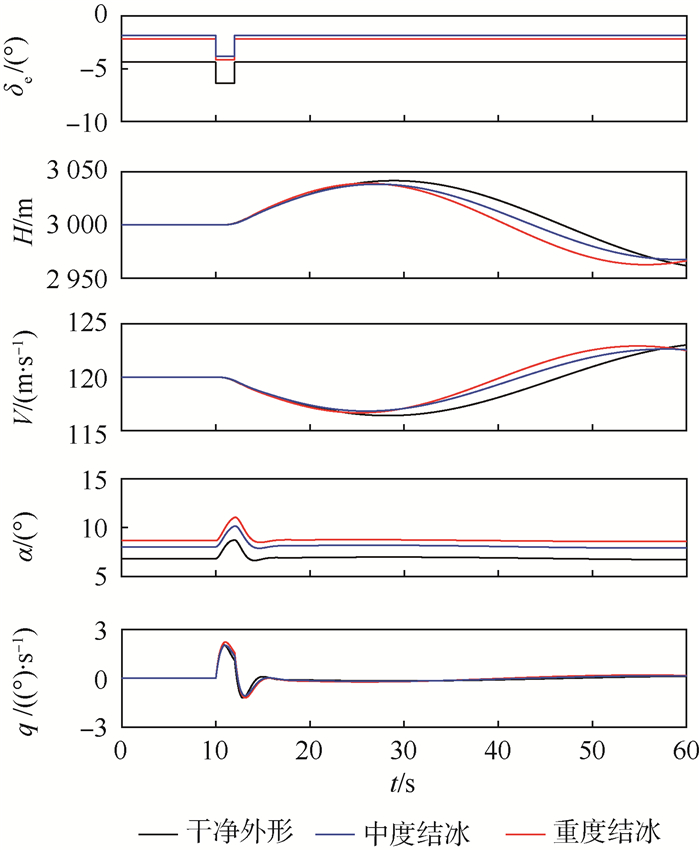 机翼结冰影响飞机的操稳特性和飞行性能,对飞行安全造成危害。基于实验数据构建了典型的不同结冰严重程度的机翼前缘积冰冰形,采用高精度数值模拟方法得到背景飞机机翼前缘积冰的气动数据,建立了飞机六自由度非线性动力学模型,在此基础上设计了俯仰角保持、滚转角保持及高度保持模式的自动驾驶仪闭环仿真系统。通过开环仿真,分析了不同程度积冰对飞机配平特性、纵向长短周期模态及横航向模态的影响,比较了不同程度积冰情形下飞机动态响应的差异。通过闭环仿真,研究了积冰对3种模式下自动驾驶性能的影响。仿真结果表明:积冰对飞机配平特性、模态特性及开环动态响应特性均会造成一定的不良影响,威胁飞行安全。