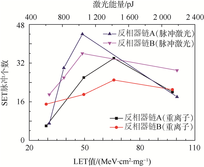 针对130 nm体硅反相器链,利用脉冲激光和重离子实验研究了目标电路单粒子瞬态(SET)的脉宽特性,并分析了电路被辐射诱发的SET脉宽特性受激光能量、重离子线性能量传递(LET)值、PMOS管栅长尺寸等因素的影响机制。重离子和脉冲激光实验结果类似,均表现为随激光能量、LET值的增加,电路被辐射诱发的SET脉宽逐步增大,且表现出明显的双(多)峰分布趋势,但辐射诱发的SET脉冲个数呈先增加再减少规律。此外,实验结果表明,在不同激光能量、LET值下,PMOS管栅长尺寸影响反相器链SET脉冲的特征不同。当激光能量、LET值较低时,PMOS管栅长尺寸大的电路产生的SET脉宽较大,而当激光能量、LET值较大时,PMOS管栅长尺寸小的电路反而产生更宽的SET脉冲。分析表明,较高激光能量、LET辐照时,寄生双极放大效应被触发可能是导致PMOS管栅长尺寸影响电路SET特征差异的主要原因。