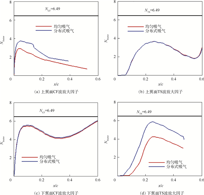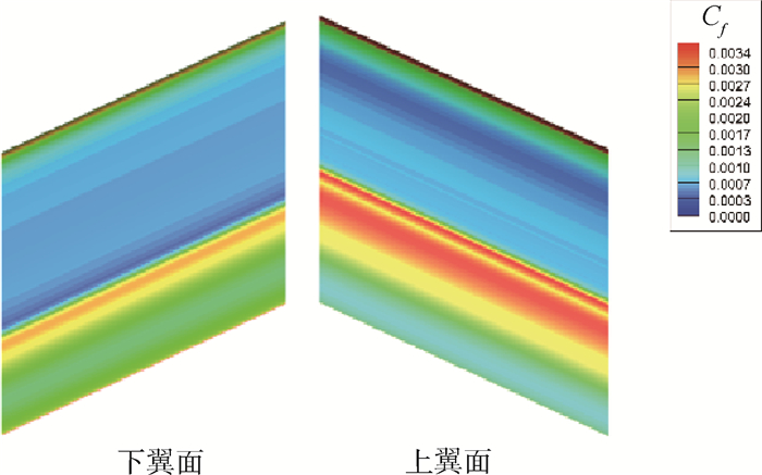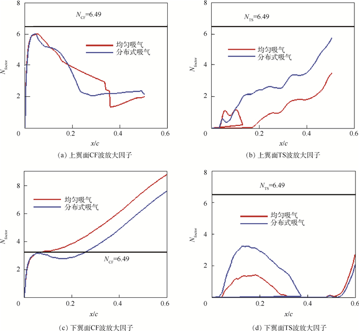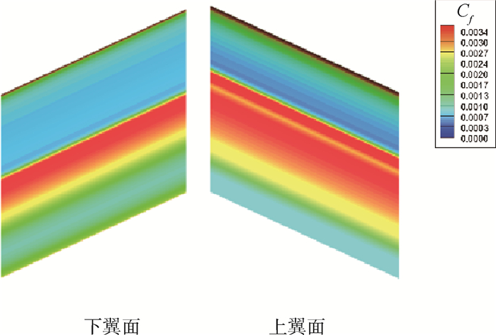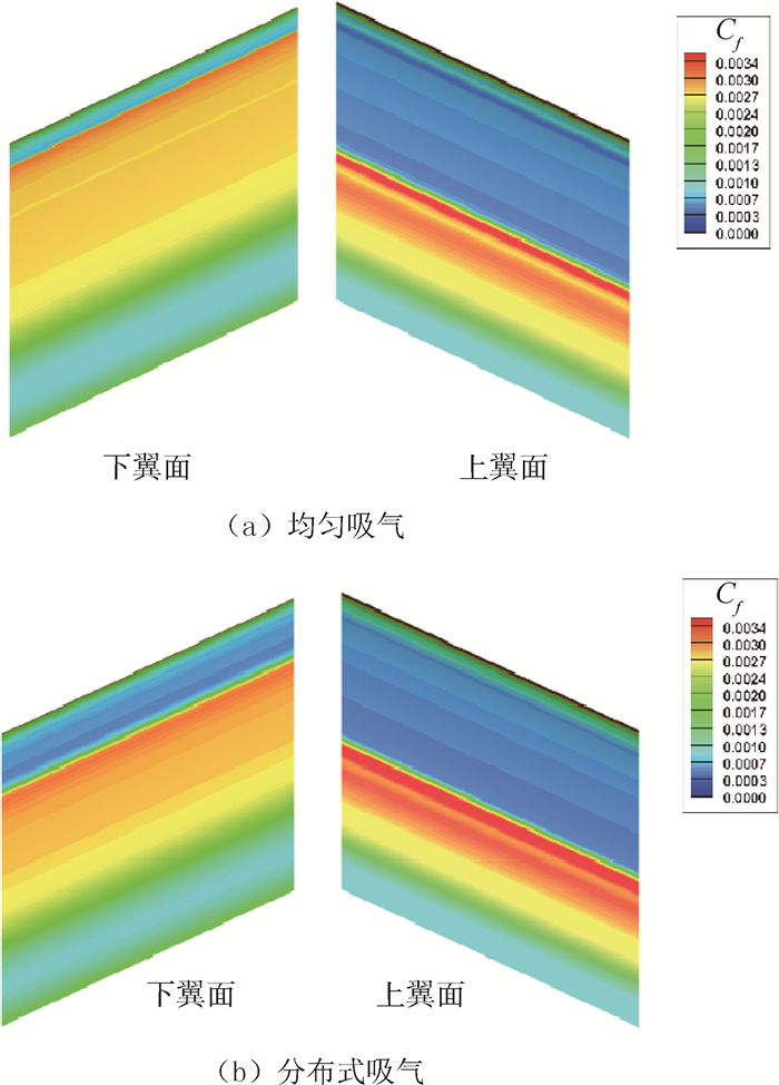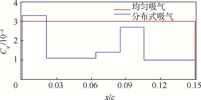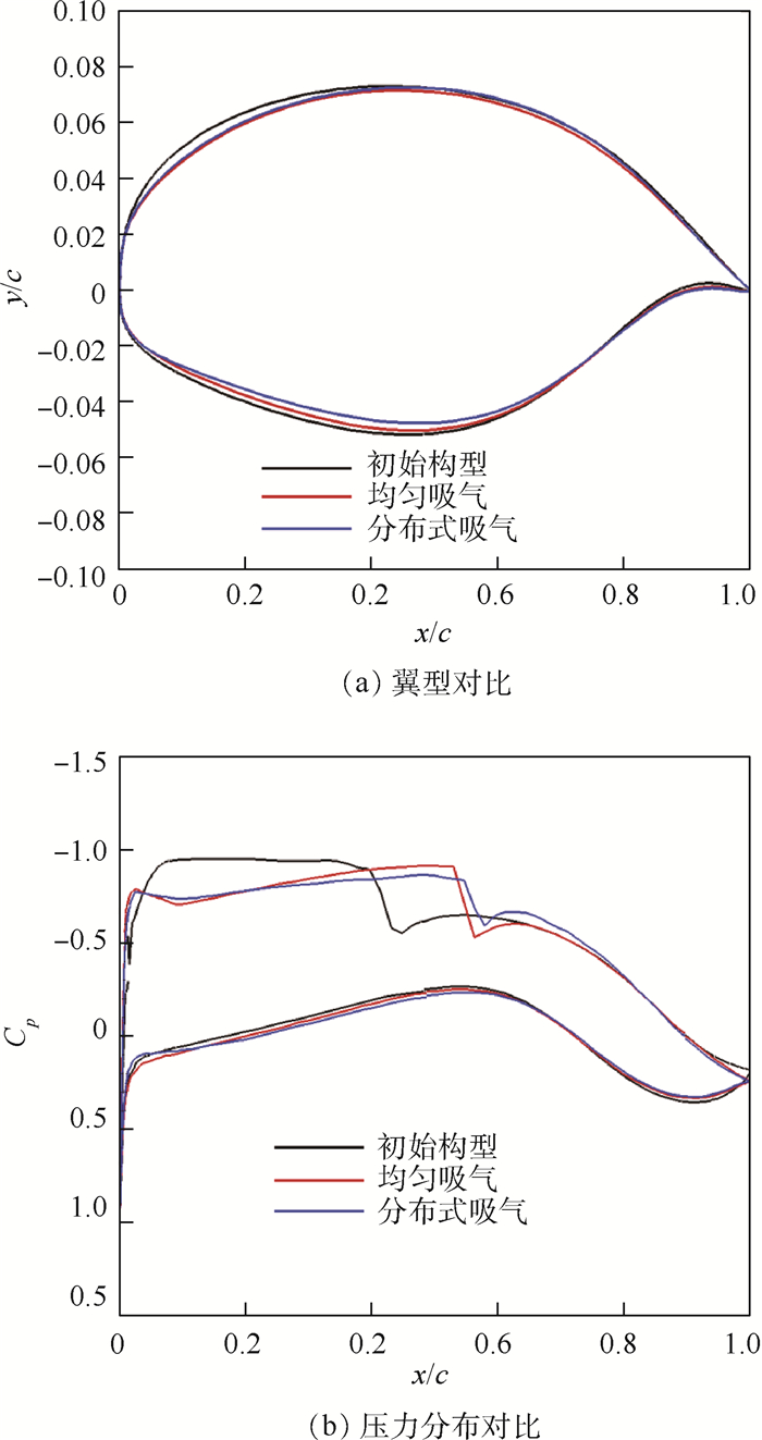 为了合理地在混合层流设计中减小阻力,降低能量消耗,利用吸气控制功率消耗与阻力、吸气速度的关系式,建立了考虑以吸气功率最小为优化目标的优化设计方法。该优化设计方法采用了自由变形(FFD)参数化方法,紧支型的径向基函数(RBF)动网格技术,改进的微分进化(DE)算法,以及耦合基于eN转捩预测的RANS流场高精度求解器。针对25°后掠角的跨声速无限展长后掠翼,进行了以阻力最小为优化目标的均匀吸气和以功率消耗最小为优化目标的分布式吸气的混合层流优化设计。优化结果表明,基于能量观点的优化结果在雷诺数10×106下可以达到均匀吸气的阻力收益,相比初始构型,阻力降低了29.1%,上下翼面转捩位置分别推迟了18%和15%弦长,功耗降低了1.7%;而在雷诺数20×106状态下,相比初始构型,阻力减小了41.3%,比均匀吸气阻力优化结果提高了4.5%,上下翼面转捩位置分别推迟了52%和14%弦长,功耗降低了8.14%。优化结果表明,建立的基于能量观点的混合层流优化方法是可行的。