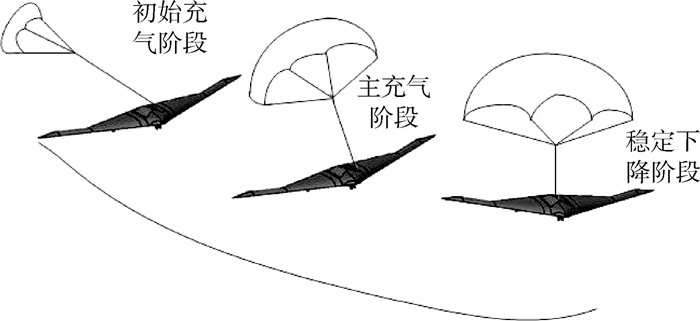 在无人机的伞降回收过程中,无人机与降落伞一直都处于实时的动平衡状态,两者在伞降回收过程中的耦合关系及其复杂,因此很难建立精准的无人机伞降回收动力学模型。针对该问题,将伞降回收系统划分为降落伞和无人机分别进行处理。针对时变对象降落伞,通过阻力面积随充气时间的变化关系建立其动力学模型。针对无人机,首先,基于多体动力学思路,将其划分为左右机翼和机身的多体系统,通过平板绕流系数优化其伞降过程中的大迎角动力学模型;然后,通过偏速度矩阵将各体的动力学模型引入伞降回收系统质心;最终,基于凯恩方程推导并建立了伞降回收系统六自由度模型,并引入海拔高度和风力对无人机伞降回收的影响。通过数值仿真与实验数据的对比,可以发现两者具有较好的一致性,该动力学模型能够为无人机的伞降回收提供指导。