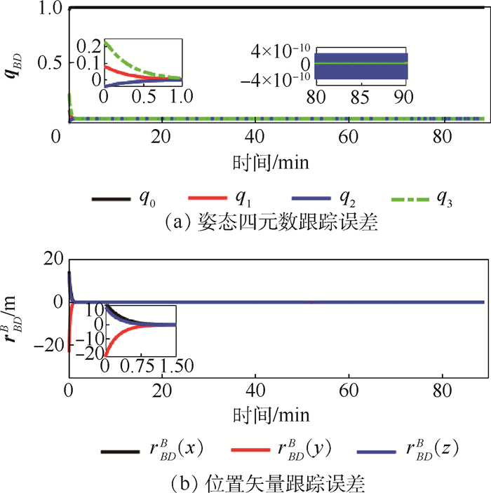 为了实现航天器姿态与轨道的同步控制,提出了一种航天器姿态与轨道联合控制的非奇异自适应终端滑模控制律。首先,建立了航天器姿轨耦合运动的对偶四元数模型;其次,提出了一种姿轨联合跟踪控制的非奇异终端滑模控制律,并设计了自适应控制律以改善质量特性不确定性的影响,利用李雅普诺夫函数证明了所提控制律的稳定性;最后,绕飞小行星的跟踪控制仿真算例表明了控制律的有效性。结果表明:所提控制律具有较高的控制精度,能够在有限时间内收敛,仿真过程中不存在奇异点,抑制了质量特性的不确定性对控制的影响,且对滑模的抖振特性有抑制效果。