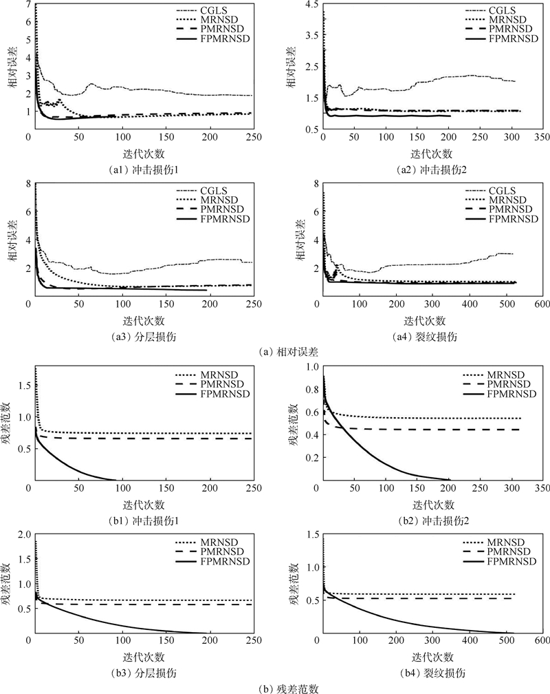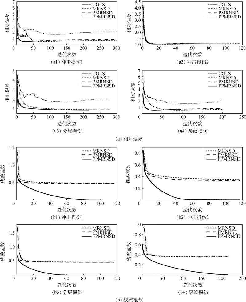电阻抗层析成像(EIT)作为一种新兴的碳纤维增强复合材料(CFRP)无损检测方法,具有成本低、无辐射、可视化等优点,受到研究者广泛关注。EIT逆问题具有严重的病态性,通常采用正则化算法改善成像质量。基于修正残差范数最陡下降法(MRNSD),利用其在减少图像伪影和保持边界信息方面的优势,针对该算法存在的半收敛性和抗噪声效果差等问题,采用预处理和软闭值方法对MRNSD算法进行改进。通过仿真和实验,对比所提改进算法与几种常用算法的成像效果。结果表明,所提算法有效提高了EIT图像质量和抗噪声能力,并且实现了最佳迭代次数的自动更新,有利于推动EIT方法在CFRP损伤检测中的实际应用。