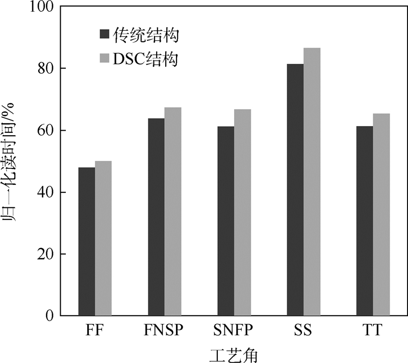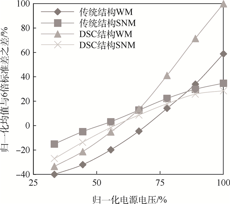 针对低电压下静态随机存储器(SRAM)出现的读写性能损失的问题,设计了一种应用于低功耗SRAM的两步控制(DSC)的字线电压辅助电路技术,可以同时实现读和写辅助的功能,降低SRAM的最小工作电压从而降低功耗。写辅助通过字线开启前段的字线过驱(WLOD)实现,提高写数据速度和写阈值(WM);读辅助通过字线开启后段的字线欠驱(WLUD)实现,降低静态噪声,提高稳定性。通过在28 nm互补金属氧化物半导体(CMOS)工艺下,对256 Kbit SRAM进行前仿和后仿仿真验证,结果表明相比于传统结构,应用DSC字线电压技术的SRAM的最小工作电压降低100 mV,写时间减小10%,静态功耗降低30%,版图面积增大4%。