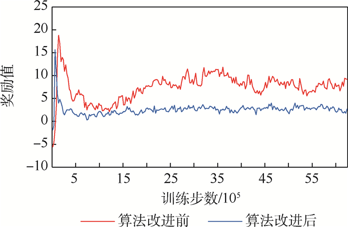 未来作战的发展方向是由多智能体系统构成的无人集群系统通过智能体之间自主协同来完成作战任务。由于每个智能体自主采取行为和改变状态,增加了智能群体行为策略训练的不稳定性。通过先验约束条件和智能体间的同构特性增强奖励信号的实时性,提高训练效率和学习的稳定性。采用动作空间边界碰撞惩罚、智能体间时空距离约束满足程度奖励;通过智能体在群体中的关系特性,增加智能体之间经验共享,进一步优化学习效率。在实验中,将先验增强的奖励机制和经验共享应用到多智能体深度确定性策略梯度(MADDPG)算法中验证其有效性。结果表明,学习收敛性和稳定性有大幅提高,从而提升了无人集群系统行为学习效率。