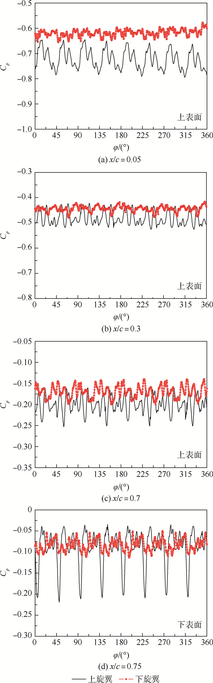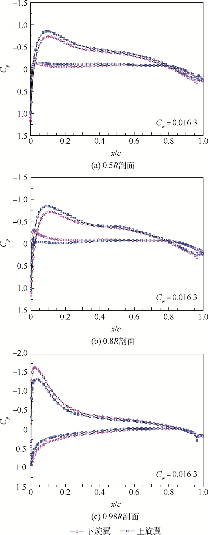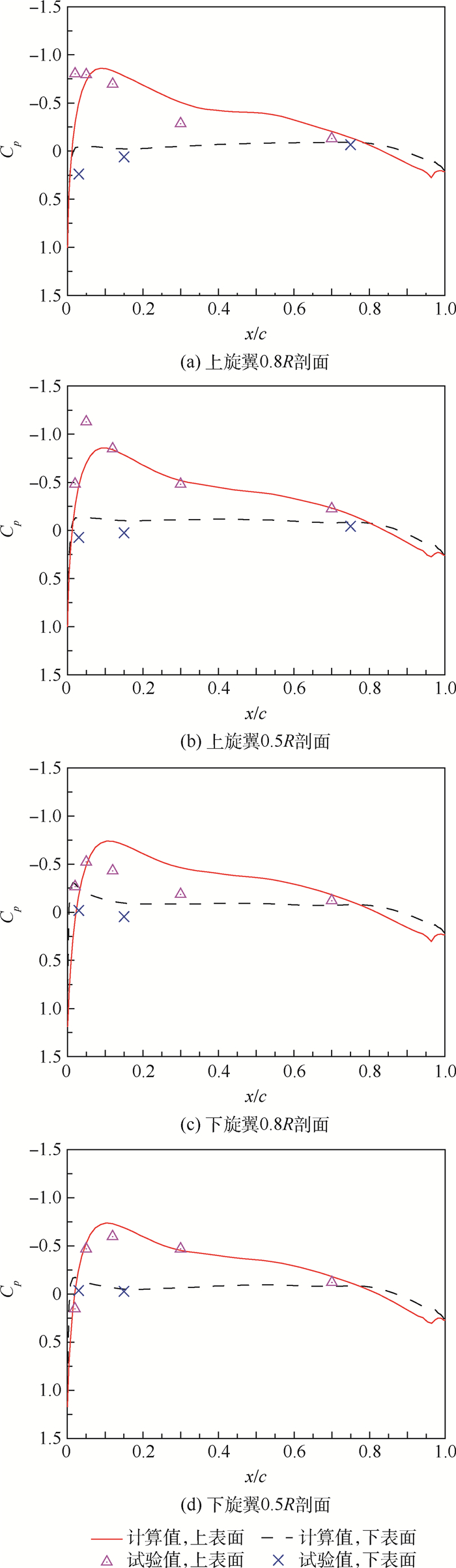 共轴刚性旋翼悬停状态桨叶表面压力测量试验与计算研究