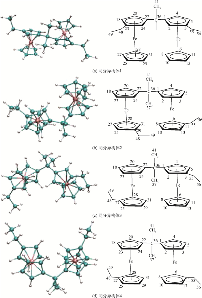 2,2'-双(乙基二茂铁)丙烷(卡托辛)是一种综合性能优良的高效液体燃速催化剂,主要包含4种乙基取代位置不同、物理和化学性质均很相近的卡托辛同分异构体和不同取代基的双二茂铁丙烷,其中卡托辛同分异构体与其他双二茂铁丙烷很难分离。首先,采用密度泛函理论(DFT)方法模拟确定了4种同分异构体的结构,分别获得4种同分异构体的1H-NMR和13C-NMR理论谱图。其次,计算研究了合成过程中温度对产物中4种同分异构体含量的影响。最后,在理论合成条件的指导下,以高纯度乙基二茂铁和丙酮为原料、浓硫酸为催化剂,合成了卡托辛粗品。结果表明:利用惰性气体辅助蒸汽蒸馏法得到纯度大于99.0%的卡托辛同分异构体,收率高于94.0%,并通过核磁共振法确定了其结构。