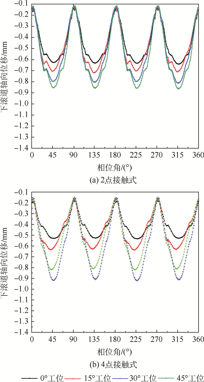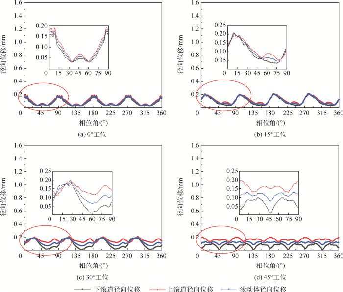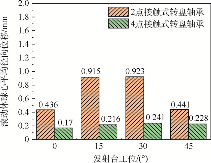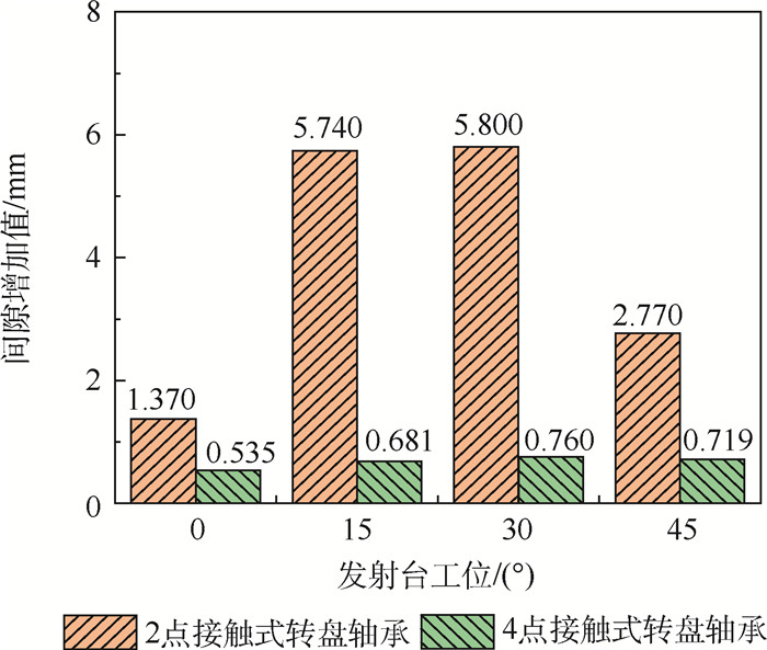 针对航天发射台转盘轴承工作时出现滚动体集聚导致摩擦力矩增大的问题,研究转盘轴承中滚动体之间间隙变化对集聚效应的影响。通过对典型工位处进行有限元分析,对比不同接触类型转盘轴承的滚道变形和滚动体接触作用力的分布规律。在确定滚动体与隔离块的几何关系后,进一步分析了滚道变形和滚动体接触作用力的时变性对滚动体间隙变化的影响,并将间隙变化和集聚效应建立了联系。有限元计算得到的发射台框架变形与实验测量数据一致,验证了有限元计算的可靠性。仿真结果显示,由于下滚道发生轴向变形,滚动体在运动过程中不断交替进行“爬坡”和“下坡”;滚道径向变形导致滚动体之间增大了较多的间隙;各滚动体的驱动摩擦力不断变化,运动状态具有时变性,当转盘轴承中间隙增加时,运动状态不断变化的滚动体导致增加的间隙出现累积,引起滚动体集聚。为消除滚动体集聚效应,探索其对摩擦力矩的影响,进行了对比实验。结果表明:集聚效应导致发射台的摩擦力矩增加,且变化剧烈。